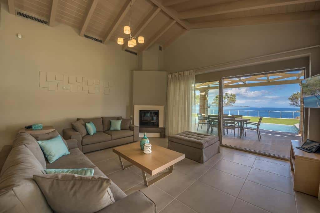 The highlight of this villa is undoubtedly its breathtaking panoramic views. From dawn to dusk, the vista of the Ionian Sea stretches endlessly before you, with sunsets that paint the sky in hues of orange and pink, creating a spectacle that is nothing short of extraordinary.