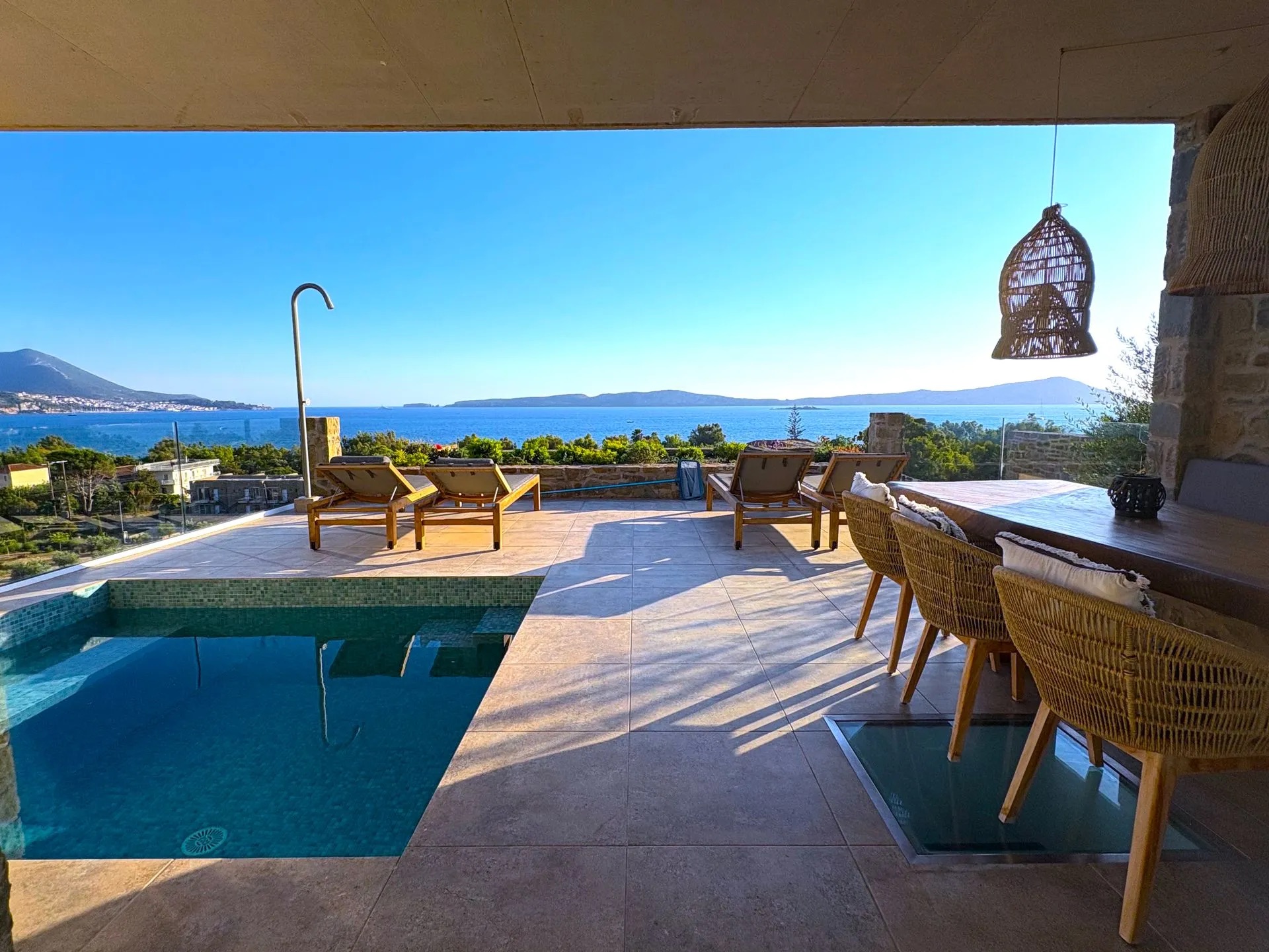 Outdoor living: Private swimming pool with panoramic sea views