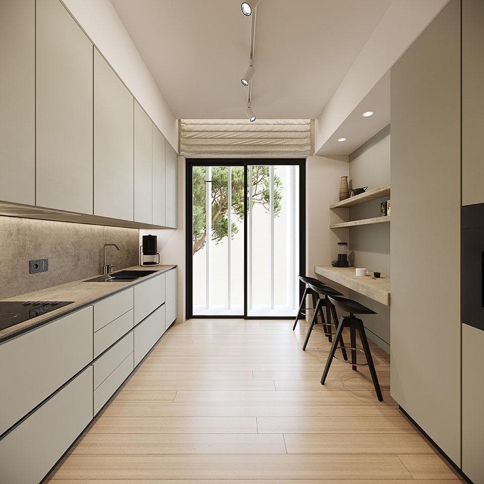 Currently under construction, the maisonette features three bedrooms, each with its en-suite bathroom, making them master bedrooms in their own right. Additionally, there is a well-equipped kitchen and a separate WC for guests’ convenience.