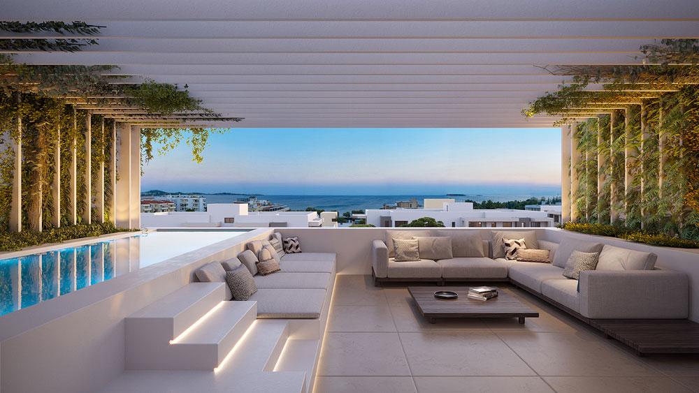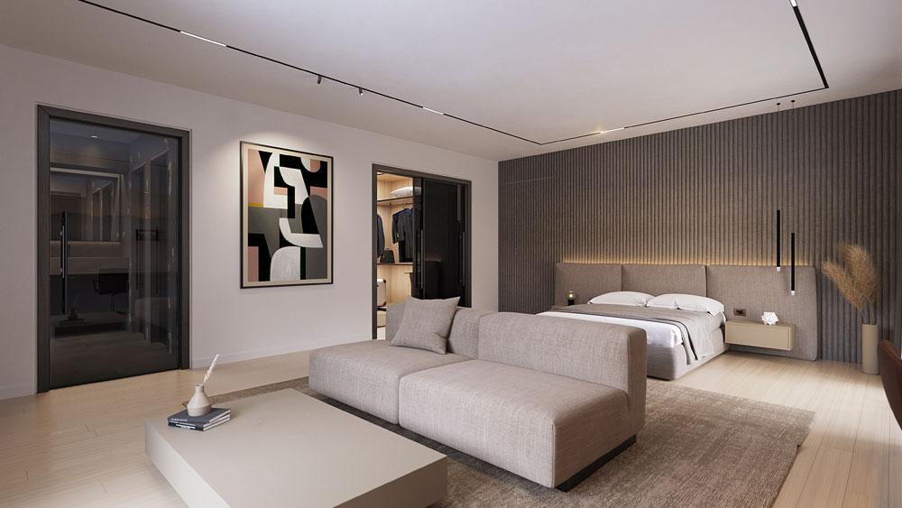 As you step into the southwest-facing master bedroom, you’re greeted with panoramic views of the stunning Saronic Bay sea and ancient temple, creating a mesmerizing backdrop for every sunset.