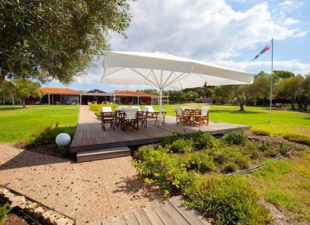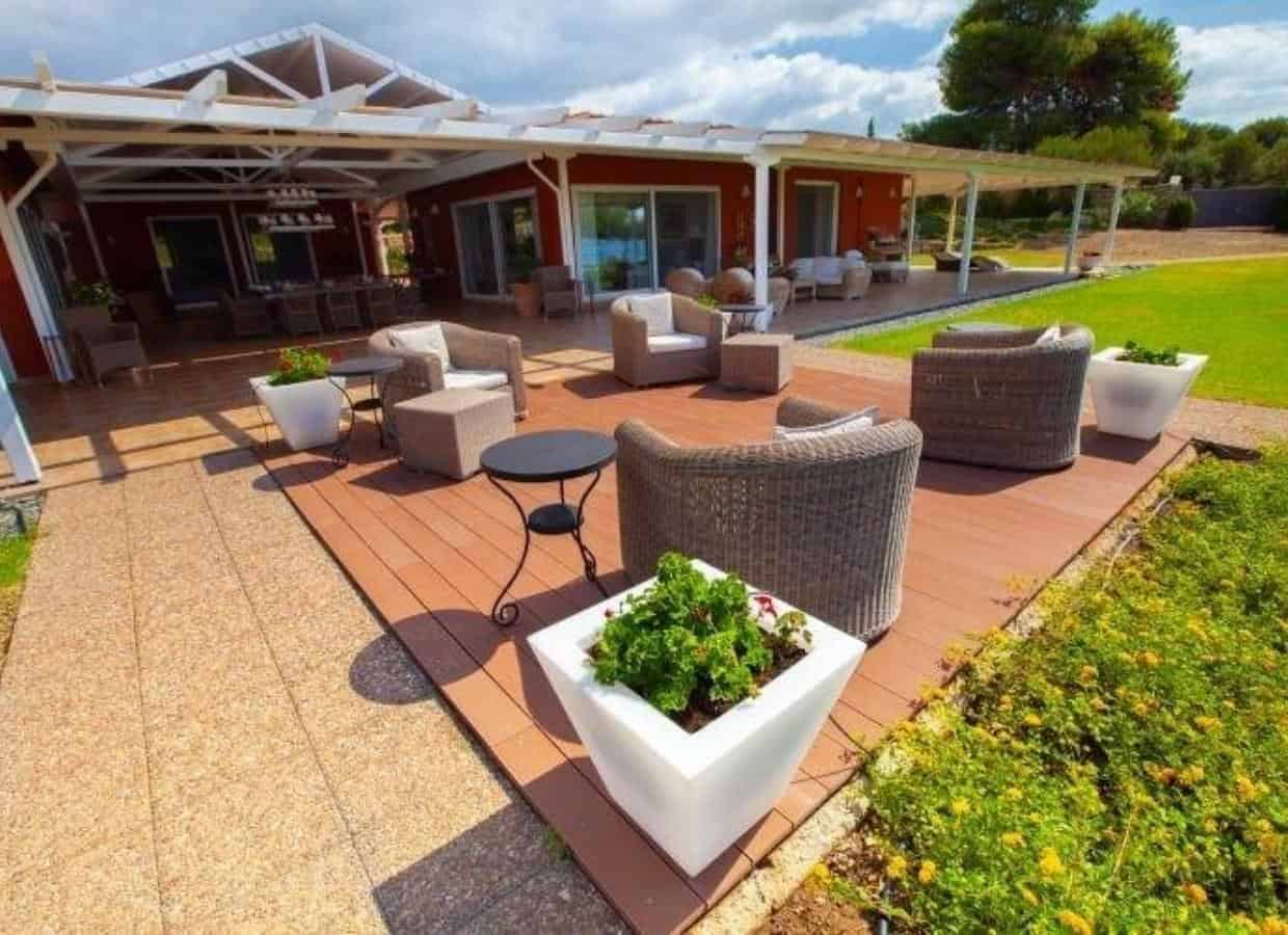 The villa’s outdoor spaces create a serene retreat, ideal for enjoying the Mediterranean climate: