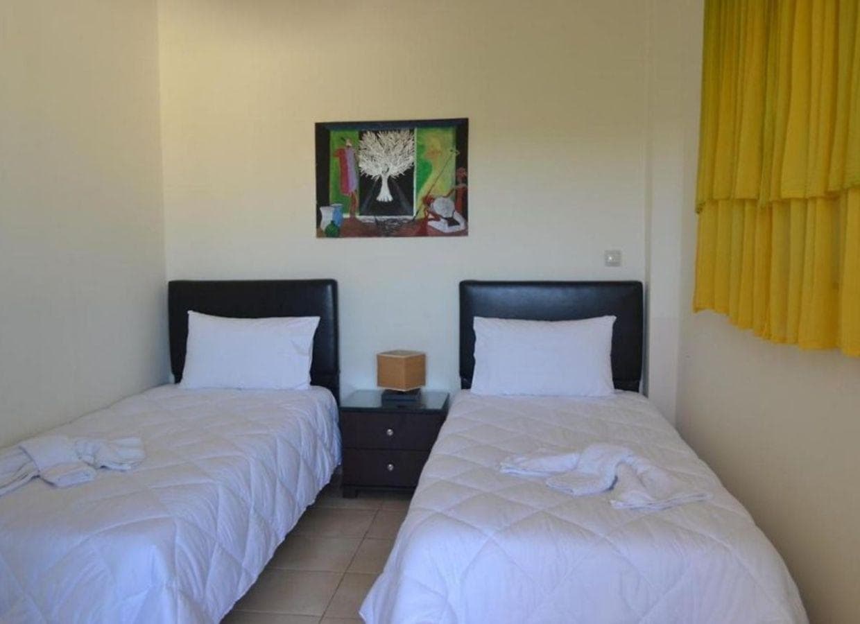 The ground floor of every villa unfolds a welcoming space featuring a well-appointed kitchen, a cozy living room, and an elegant dining area adorned with a fireplace—expansive windows open towards the meticulously landscaped garden, connecting the indoor and outdoor living spaces. Ascending to the upper floor reveals the master bedroom, a second bedroom with twin beds, and a tastefully designed bathroom, ensuring privacy and comfort.
