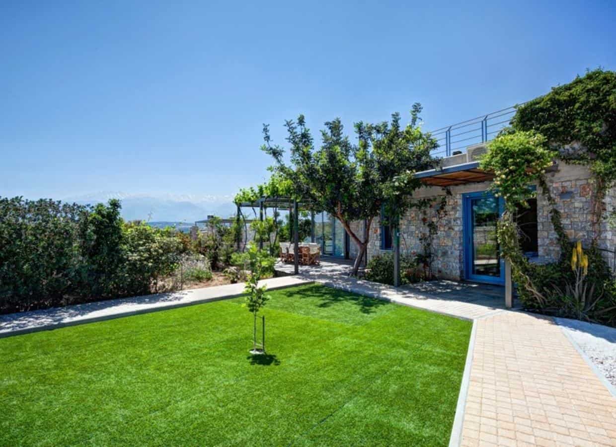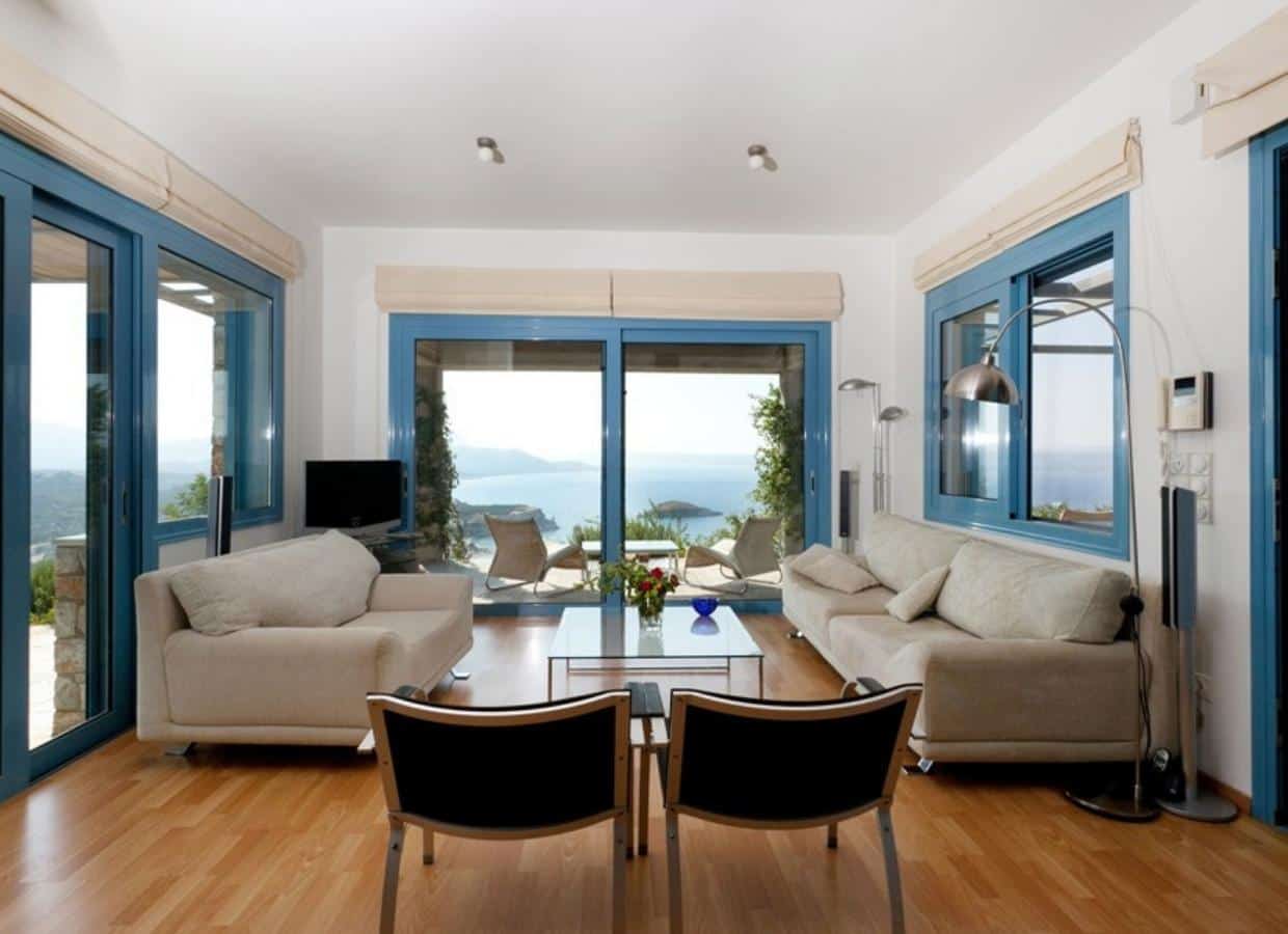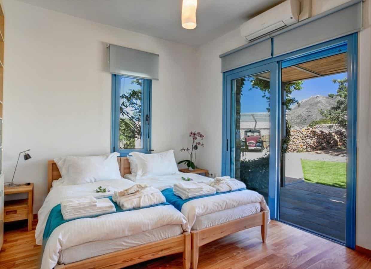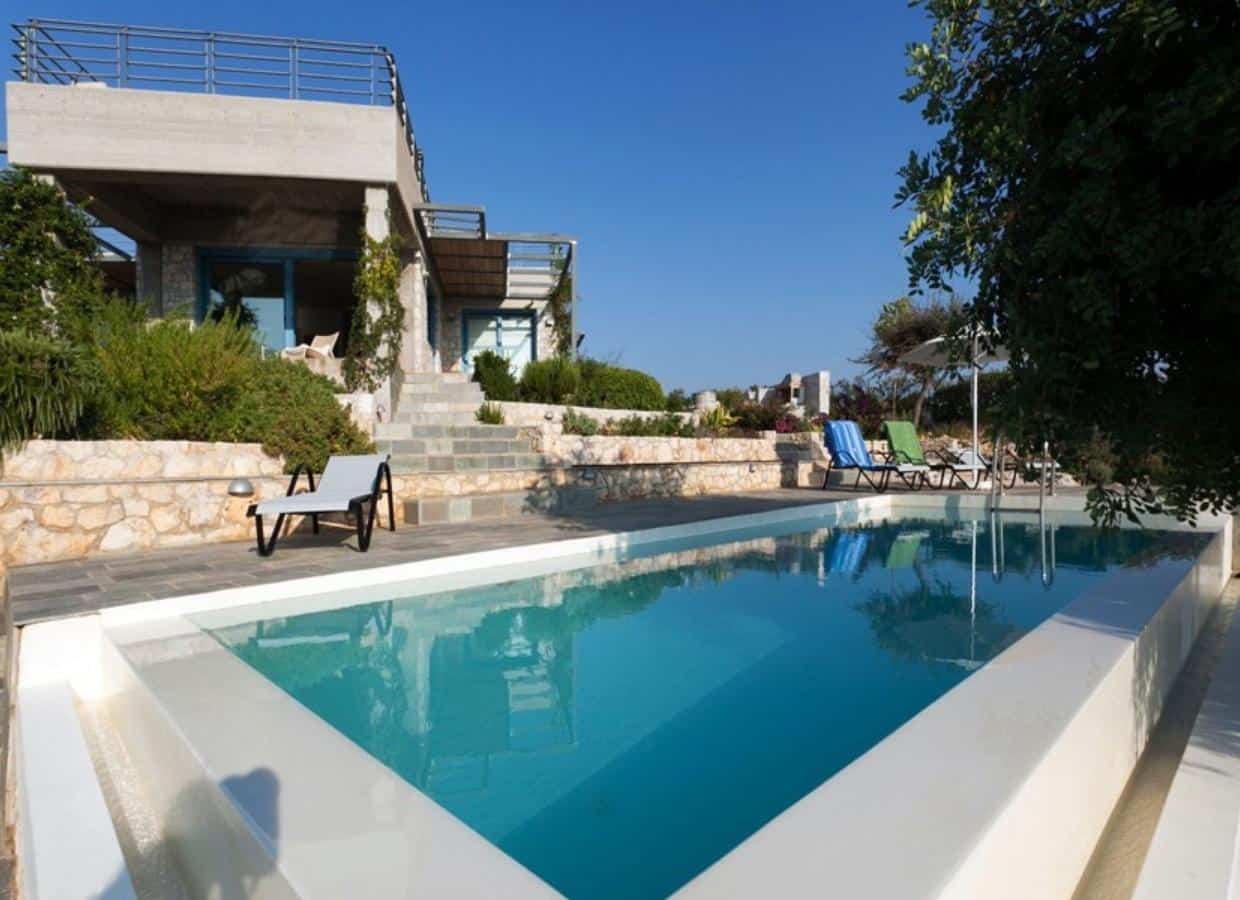 This incredible villa for sale in Apokoronas, Chania is located just outside the beautiful village of Plaka and is built on a private plot of 3985 sq.m. on a serene and isolated green hill. The spot enjoys amazing 360 views of the sea, mountains, cliffs and the bay of Almyrida. The views are the most special feature of the property, since it feels as if the villa was built right one on the seafront. The villa of 216 sq mtr is designed with a 108 sq mtr ground floor and a 108 sq mtr basement and has three (3) bedrooms and two (2) bathrooms. The 108 sq mtr basement has a separate entrance and can be used either as a playroom, sauna and gym or as an apartment. This space can meet several kinds of requirements. The ground floor consists of the living room, dining room and kitchen areas, as well as three (3) bedrooms and two (2) bathrooms (one of which is en-suite).