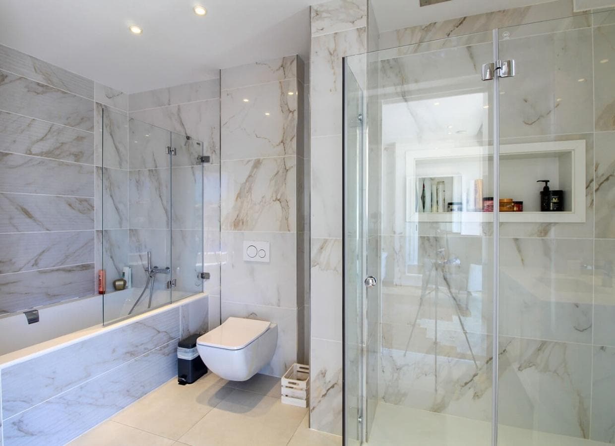 Descending the staircase to the lower level reveals a spacious master bedroom adorned with an en-suite bathroom, gym equipment for fitness enthusiasts, and ample fitted wardrobes. Three beautifully designed bedrooms, each boasting en-suite bathrooms and fitted wardrobes, complement the master suite. A secondary kitchen and utility room on this level provide convenience and practicality. All bedrooms and the utility room offer direct access to the fantastic pool, creating a seamless indoor and outdoor living connection.