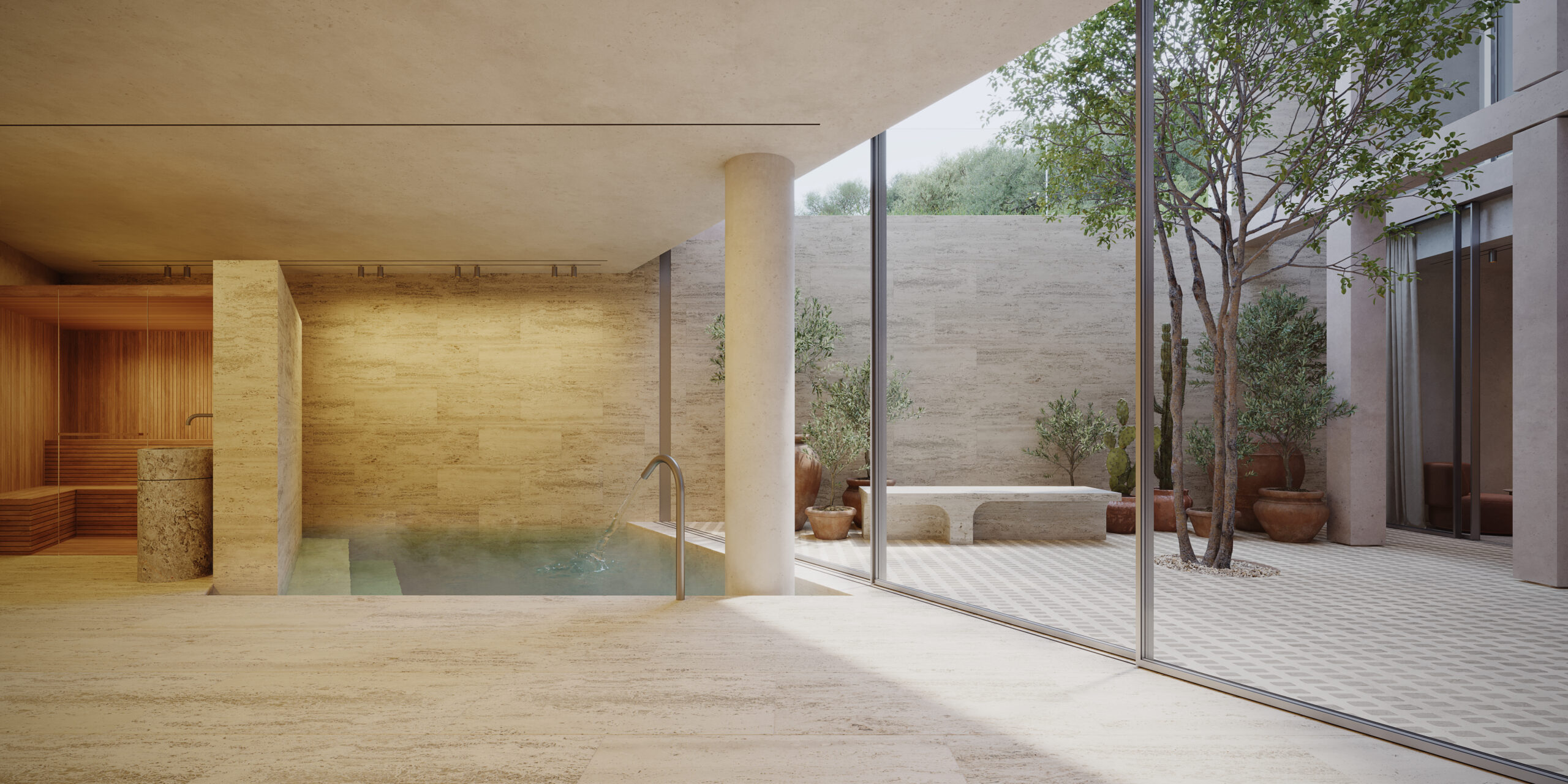 Designed to harmonize with its natural surroundings, this four-bedroom, four-bathroom residence artfully blends modern luxury with timeless Greek heritage. From the moment you pass through the striking monolithic stone entrance wall, the property reveals its thoughtful spatial composition—centered around a series of landscaped courtyards that connect public and private areas, enhancing light, airflow, and a deep sense of tranquility.