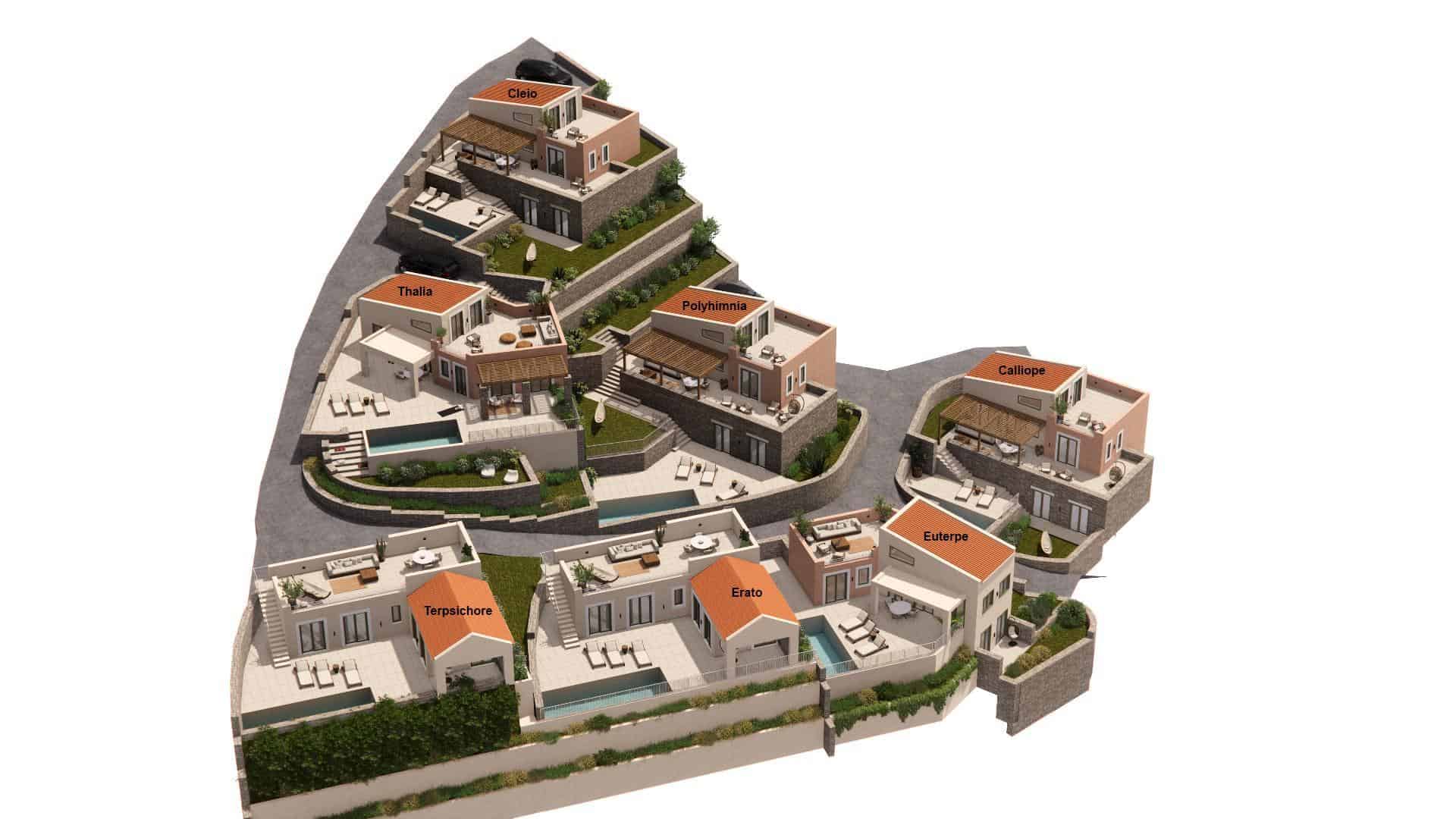 Experience a truly unique concept in Greek real estate with this exclusive villa development in Kyrianna, Crete, inspired by Greek mythology and the nine Muses, daughters of Zeus. Each villa is named after a Muse and designed to embody her spirit—creativity, joy, love, and inspiration—bringing mythology into modern living.