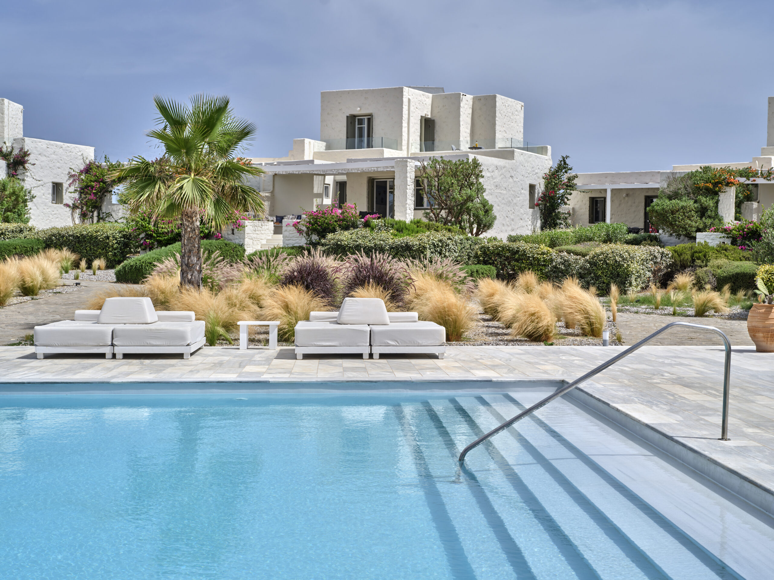 Situated in the quiet seaside village of Ampelas, the estate is only a 10-minute drive from Naoussa – famous for its vibrant nightlife, dining scene, and boutique shopping. Residents enjoy the best of both worlds: serene privacy at home and cosmopolitan flair just minutes away.