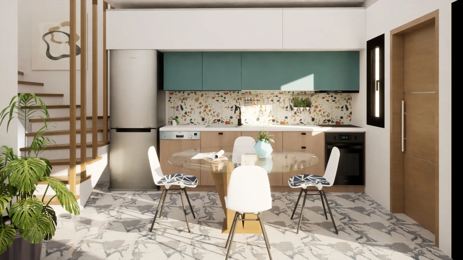 Ascend to the upper floor to discover a spacious 12m² room, uniquely complemented by an internal balcony that doubles as a loft-style space. An additional full bathroom adds convenience to this level. With balconies gracing both sides of the residences, residents can relish panoramic views and bask in the beauty of their surroundings.