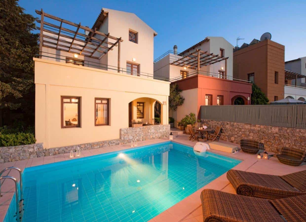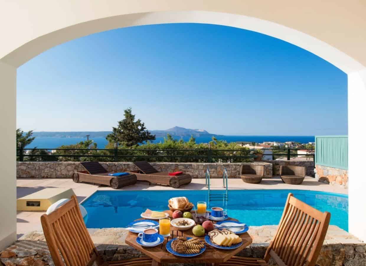 The villas, comprising four units, showcase modern Cretan island style and décor, creating an atmosphere of perfect, refined luxury. Surrounded by a small rock and herb garden with local vegetation, the elegance of these 3-bedroom villas is complemented by stunning panoramic views.