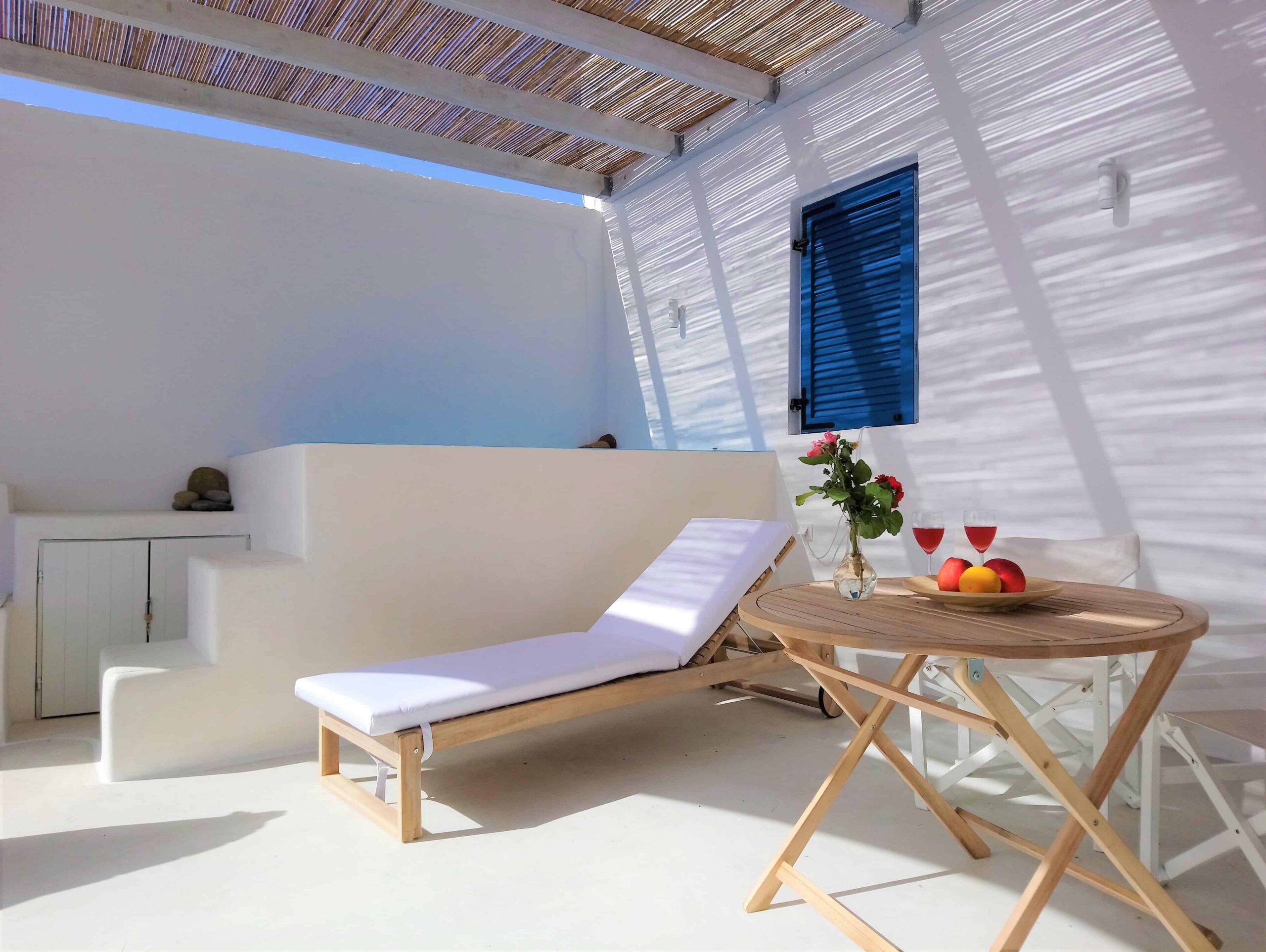 The house features two bedrooms and two bathrooms, ideal for couples and families, ensuring privacy and comfort for all occupants. A highlight of this home is the large built-in heated jacuzzi, perfect for unwinding and enjoying the serene atmosphere. The complete renovation includes new plumbing, electrical systems, floors, and bathrooms designed with a traditional Greek island flair.