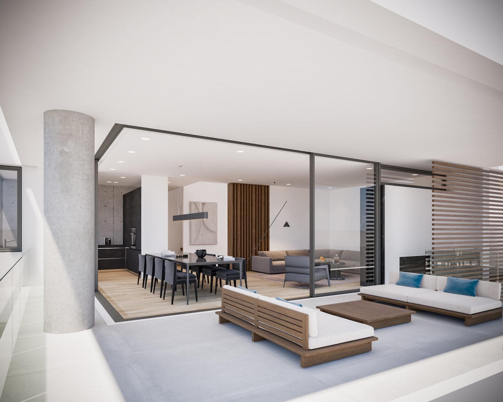 Kitchens and bathrooms are fitted with designer units and fittings from top names. Individual owners may choose specific layouts to meet their precise needs. All dwellings will be equipped with intelligent systems for fingertip control of shutters, lighting, sound, balcony awnings and air-conditioning for ease of operation. Hardwood floors of exceptional quality add to the warm ambiance of each home.