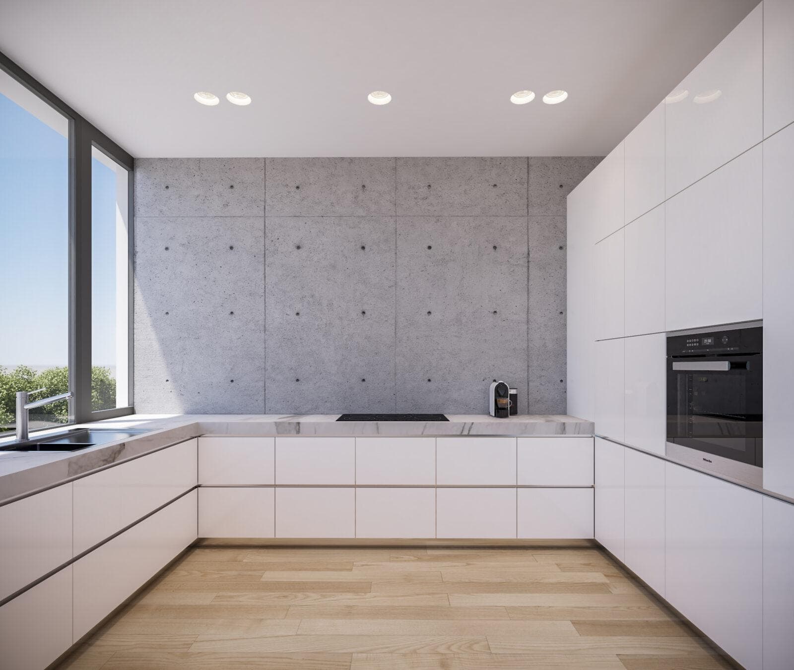 Modern devices and equipment ensure comfort and respect for the environment. At a superficial level, these include rainwater collection tanks for gardens and green spaces and solar panels for hot water. Underfloor heating in all areas creates background warmth while keeping down energy costs. Environmentally friendly design features such as reflective glass and brised soleil reduce solar heat gain. Using advanced-technology aluminum frames and thermo/acoustic-insulating glass for balcony doors attenuates noise and seasonal heat loss/gain. Stylish LED track lighting accentuates the interior design and saves energy. All homes provide optional mains gas connection.