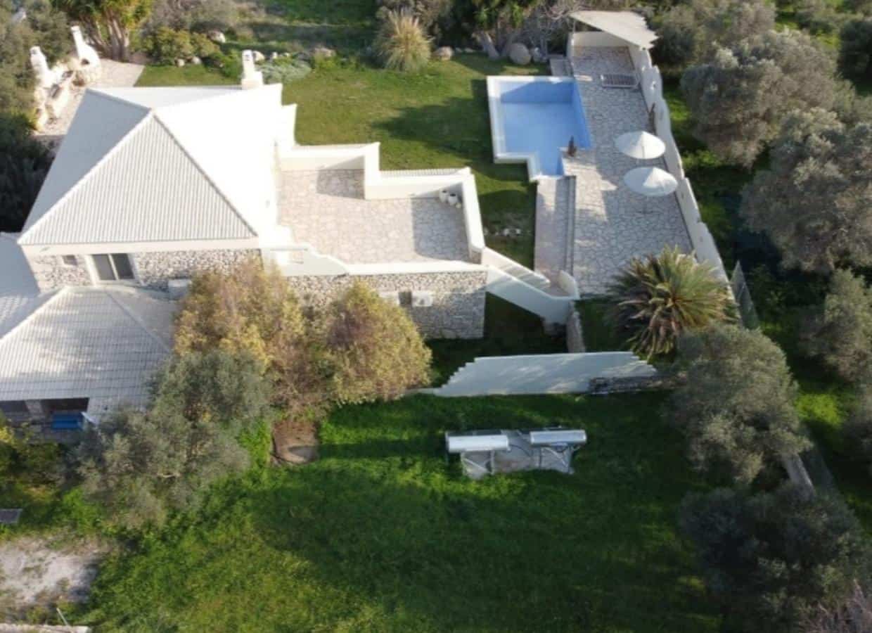 This unique stone villa for sale is located on the outskirts of Pitisidia and has views of the surrounding countryside and the mountains.