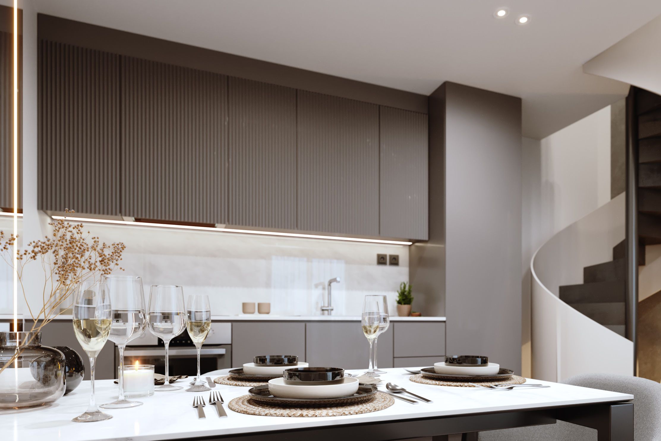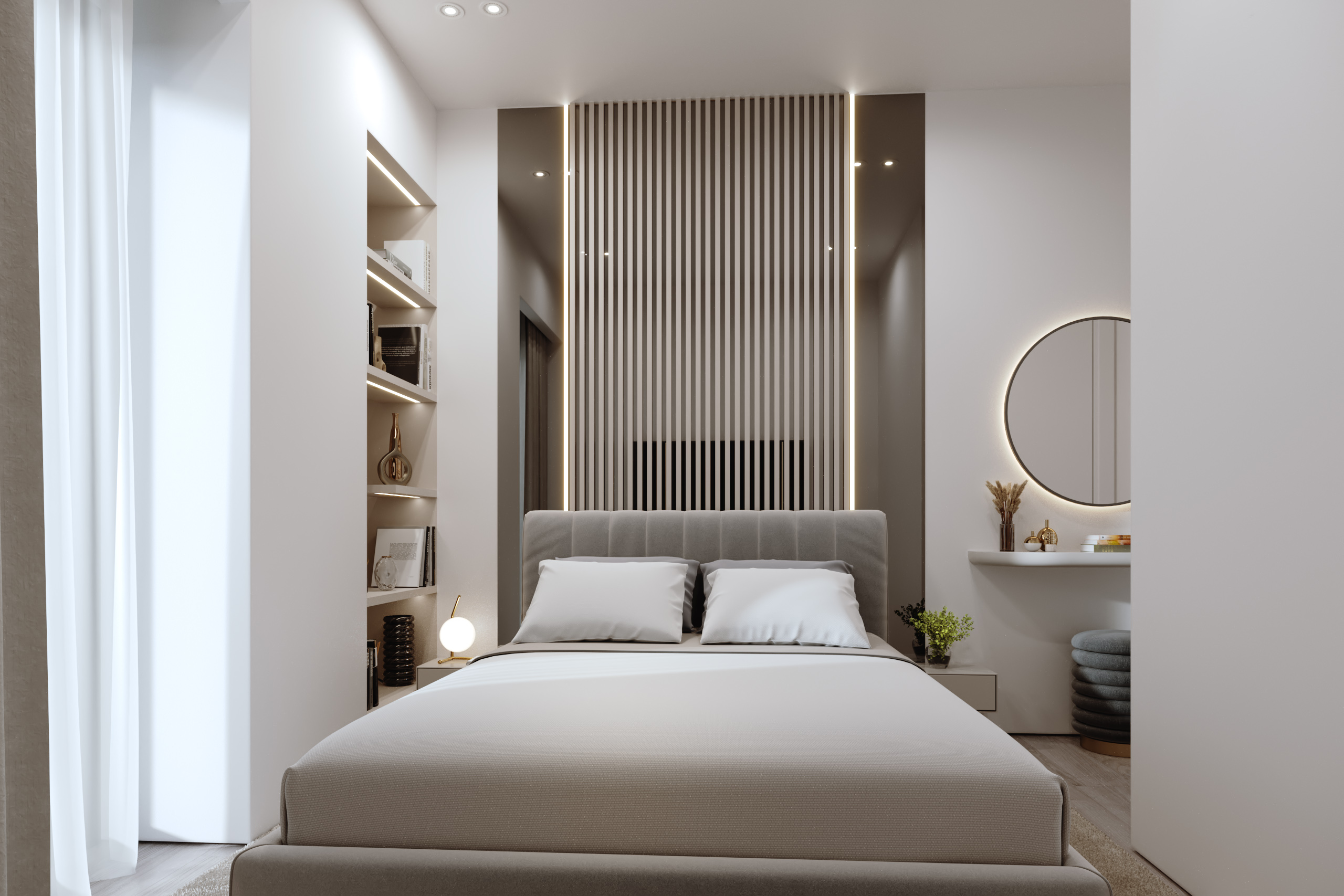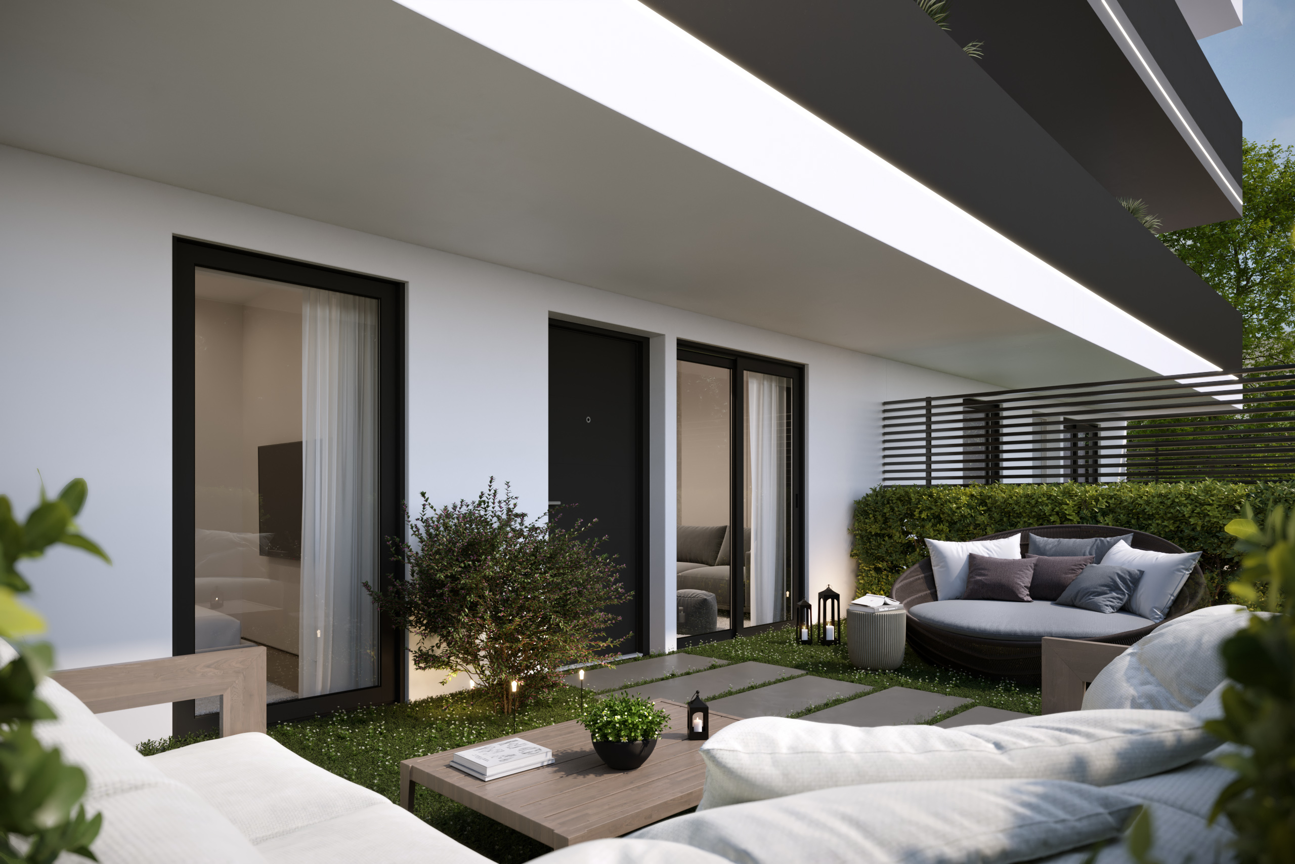 Contemporary façade design with horizontal articulation and integrated lighting