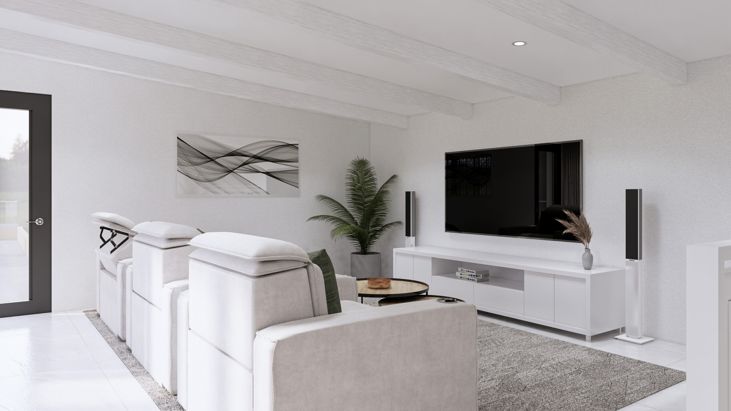 A generous cinema room with its own private bathroom, perfect for entertainment.
