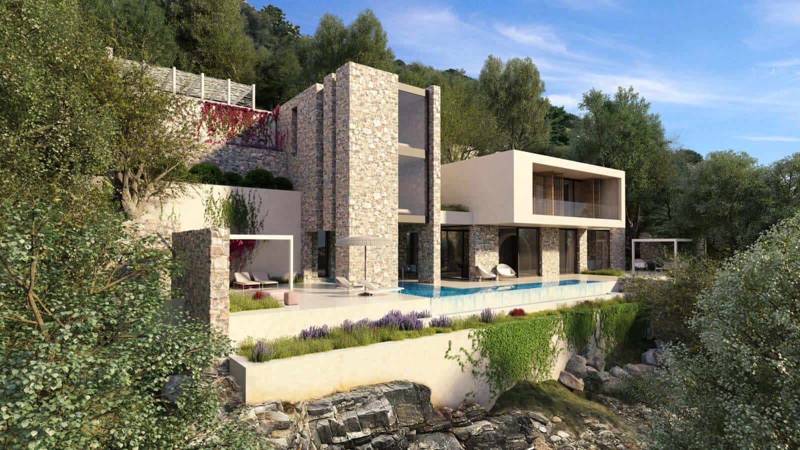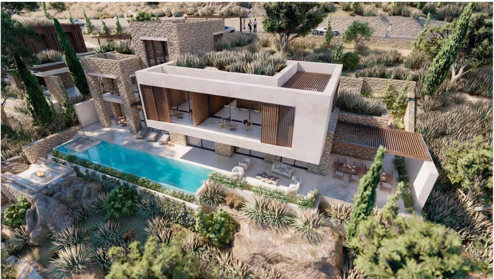 The living spaces are further enhanced by floor-to-ceiling windows, ensuring optimal light exposure and capturing the stunning views. Each residence is on an expansive plot (up to 2,200m²) and features a spacious terrace with a sizable swimming pool, a landscaped garden, and private parking. More about Merabello Villas…