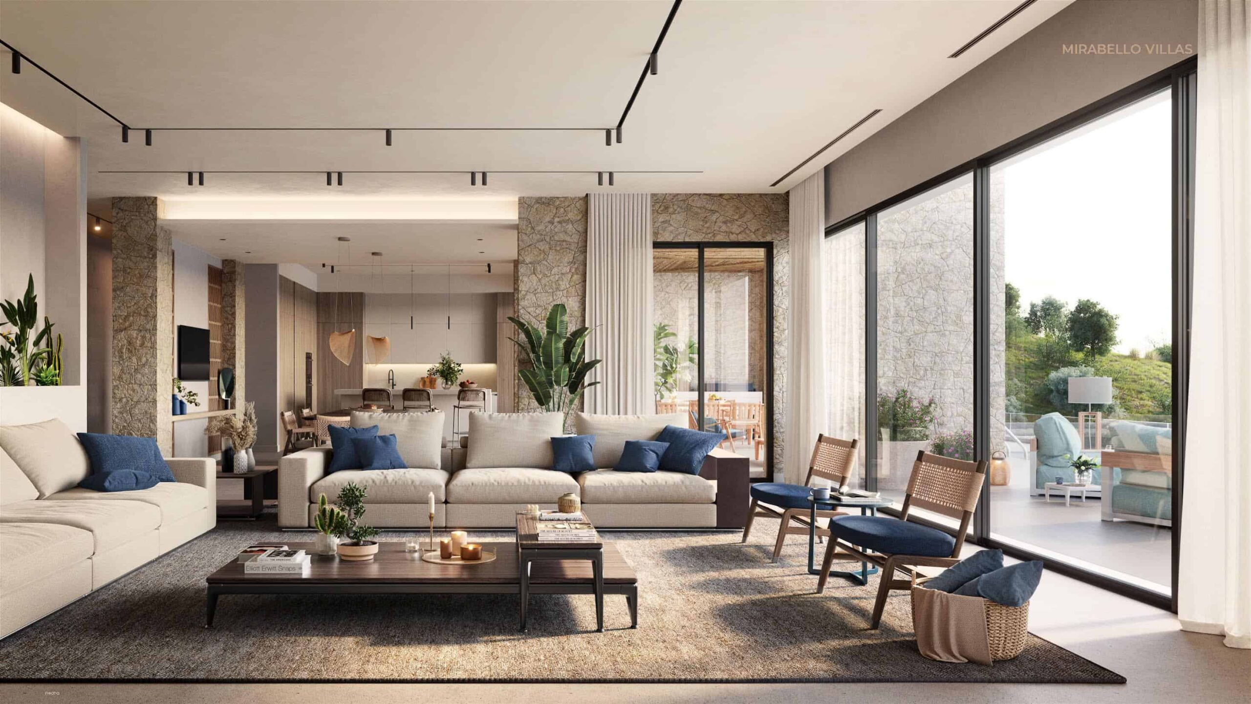 The living spaces are further enhanced by floor-to-ceiling windows, ensuring optimal light exposure and capturing the stunning views. Each residence is on an expansive plot (up to 2,200m²) and features a spacious terrace with a sizable swimming pool, a landscaped garden, and private parking.