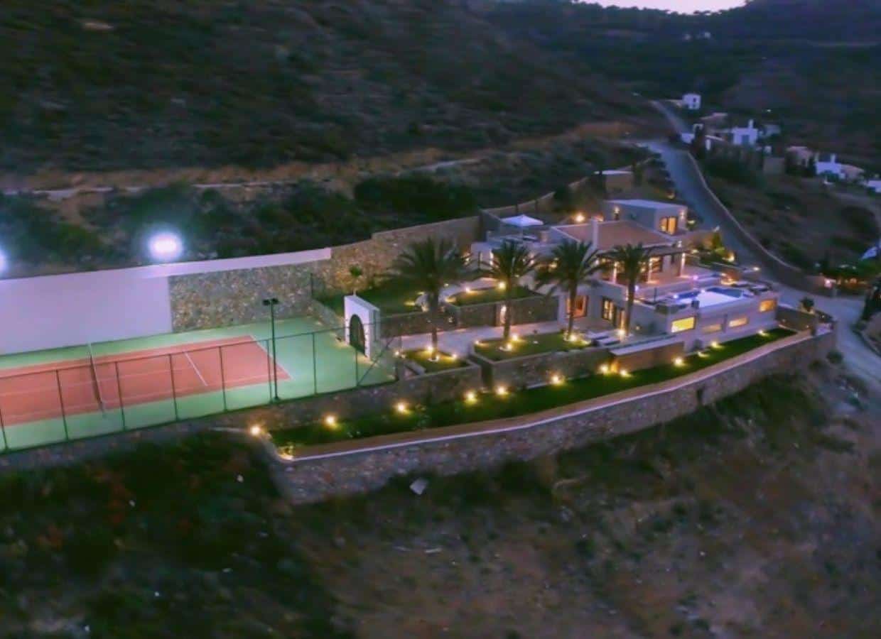 The expansive villa, encompassing a generous 550m², is meticulously crafted on a 2,780m² plot, adhering to the highest construction standards. With an emphasis on quality, the residence boasts five bedrooms, seven bathrooms, an office space, a gym, and a sauna. The property’s allure is further heightened by a private tennis court featuring a 5-meter high hit-back wall, a 43m² pool, and expansive, well-designed terraces.