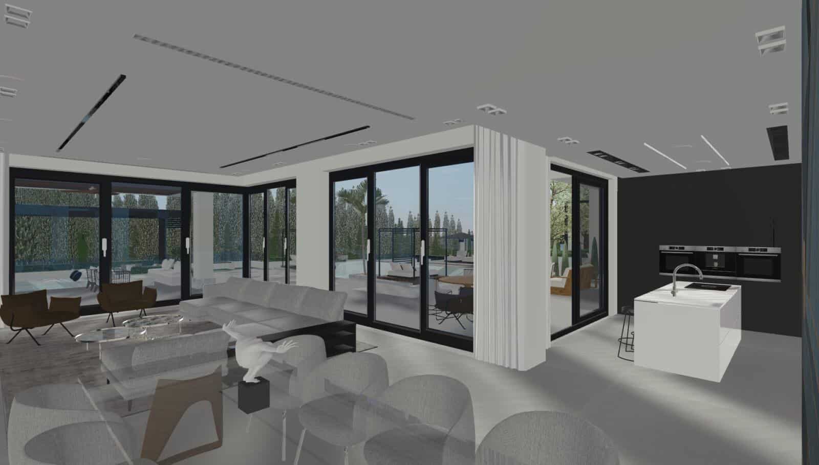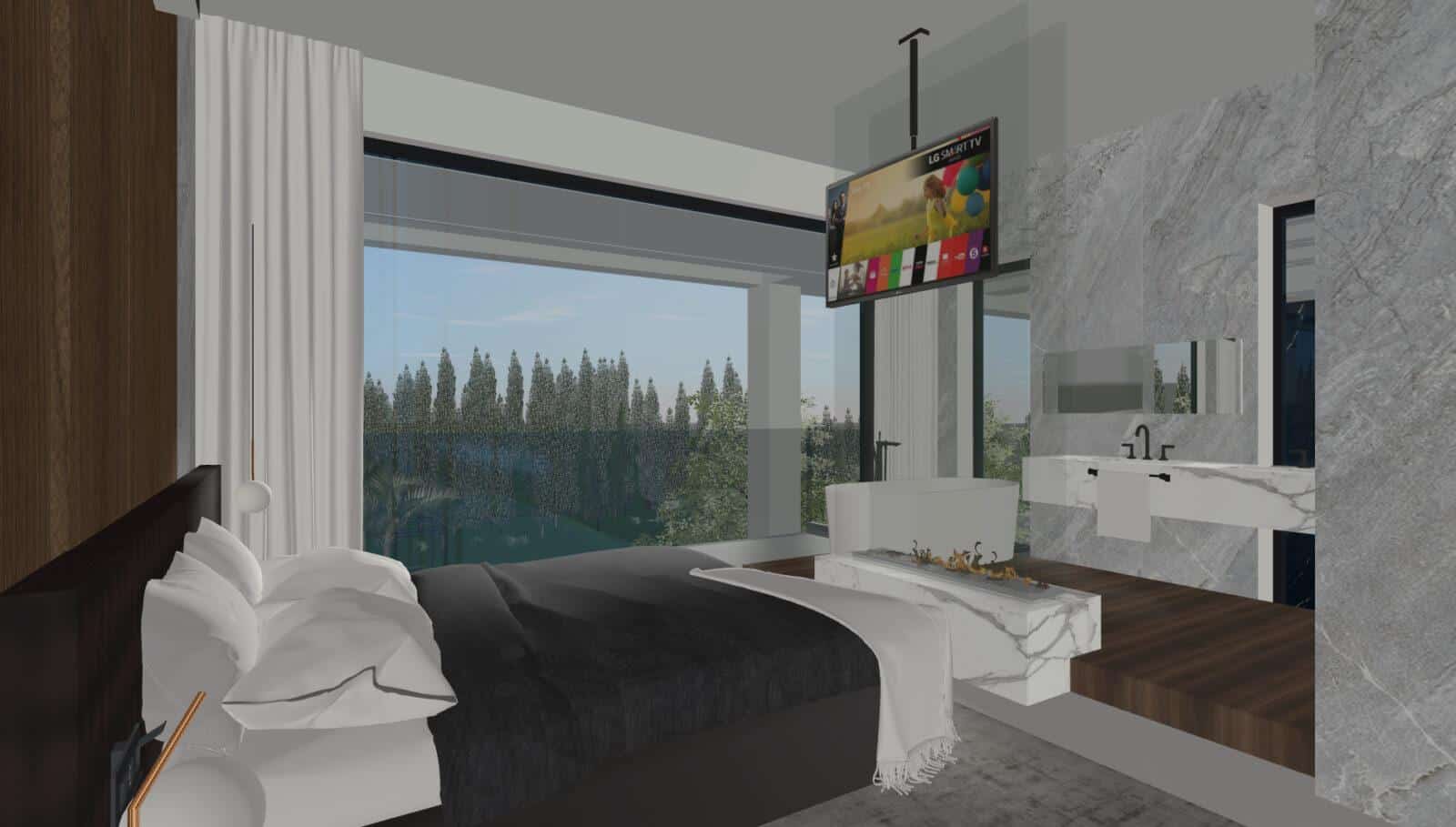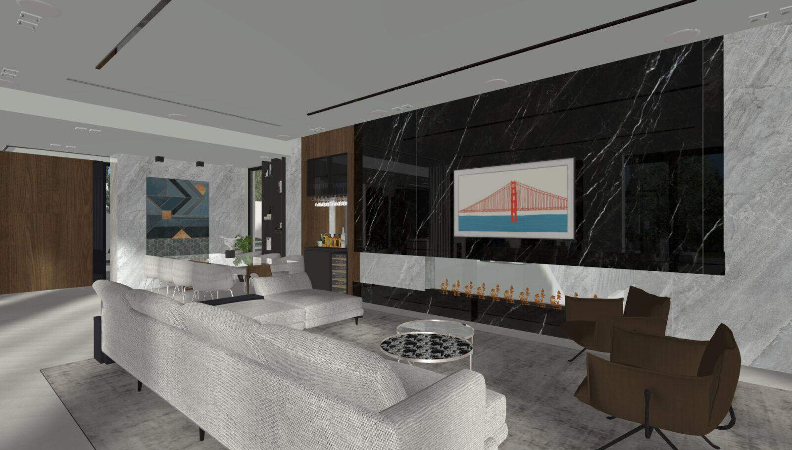 Designed to showcase the stunning views, this ultra-luxurious property incorporates floor-to-ceiling glass on its west-facing walls, creating an open atmosphere overlooking the unique forest below. Plush designer furniture, contemporary art, and refined marble accents grace the open-concept, multi-level home. This villa is perfect for a luxurious lifestyle with spaces like a bar, home theater, spacious lounge, and various outdoor living areas. The kitchen has high-tech Miele appliances seamlessly integrated into the modern and functional workspace.