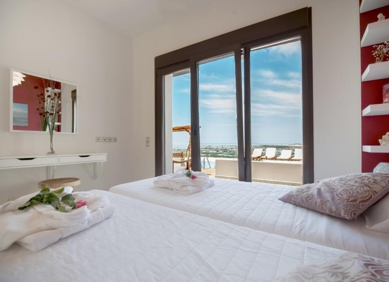 Location Highlights: Situated in Tsikalaria, just 4 km from Souda port, the villa offers serene living with mesmerizing bay views. Souda, the second-largest port in Crete, provides a range of amenities, including supermarkets, shops, cafes, and restaurants. Explore the surrounding regions, including the historic Aptera, with its Turkish fortress offering panoramic views of Souda Bay.