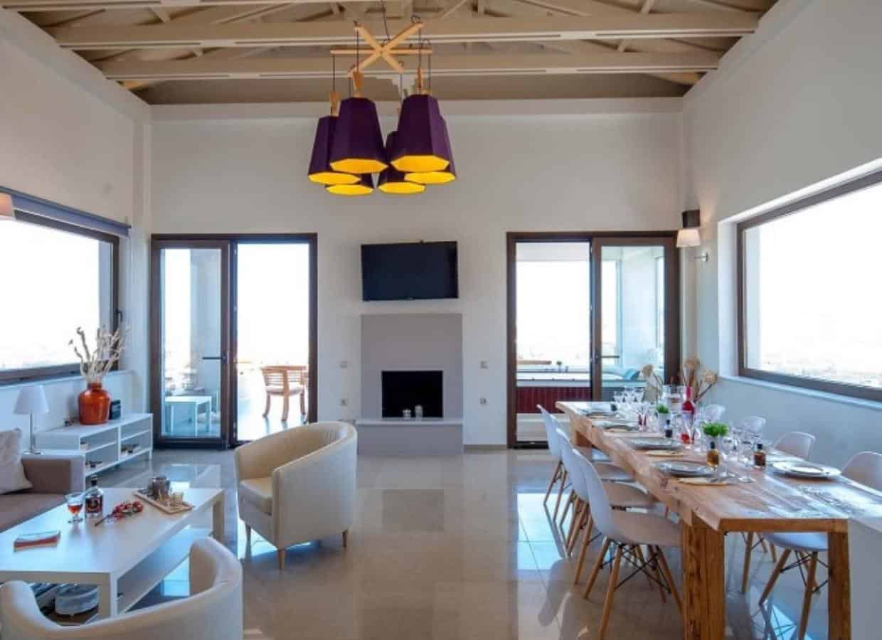 Indulge in the epitome of opulence with this unique 3-bedroom luxury villa, perched atop a hill just above Tsikalaria village, near Chania. Set on a private plot of 2,570m², the property boasts a large swimming pool, a garden area, and even a heliport, offering breathtaking views of the sea, city, and Souda Bay.
