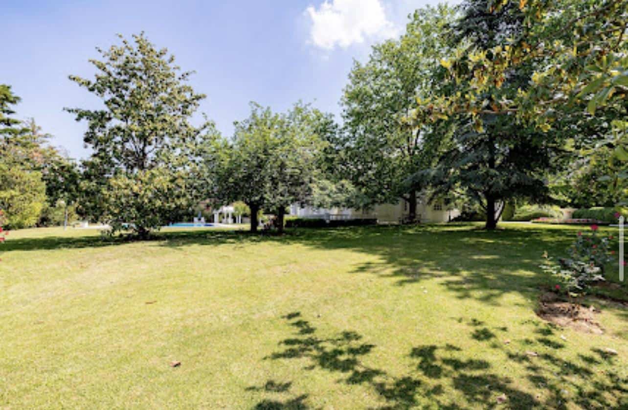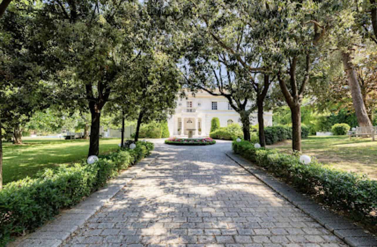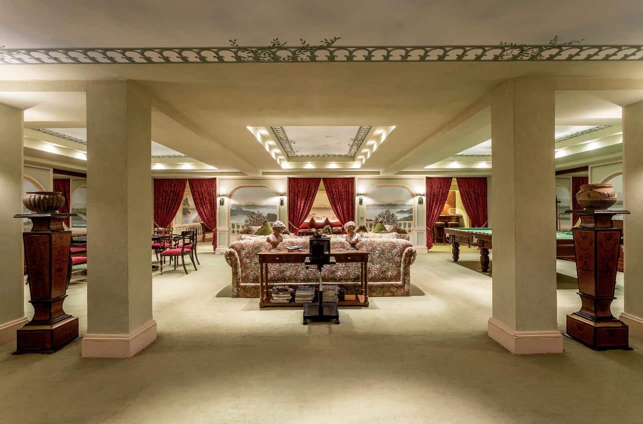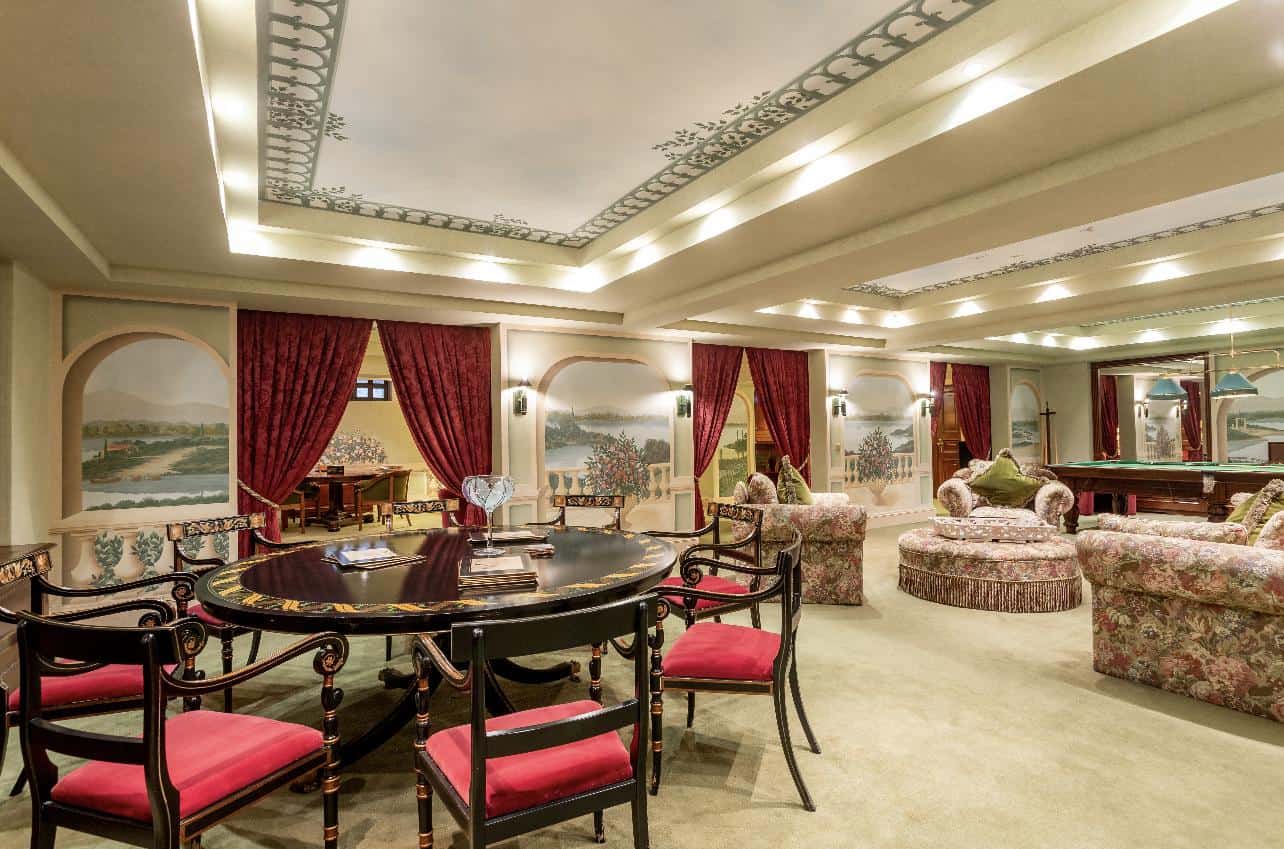 The interior exudes an aristocratic ambiance, with tastefully furnished living quarters showcasing the finest classical design. The spacious living and dining rooms, adorned with exquisite decorative elements, provide an elegant setting for grand gatherings and intimate moments. A well-appointed library and a captivating fireplace add to the home’s timeless charm, creating spaces inviting relaxation and intellectual pursuits.
