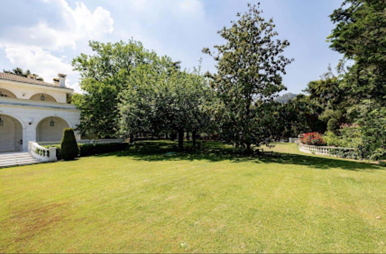 Sprawling across a meticulously landscaped land plot of 5,535m², the estate boasts an impressive living area of 1,500m², complemented by an additional 900m² of auxiliary space. The attention to detail is evident from the moment one sets eyes on the meticulously manicured grounds leading to the grand entrance of the residence.