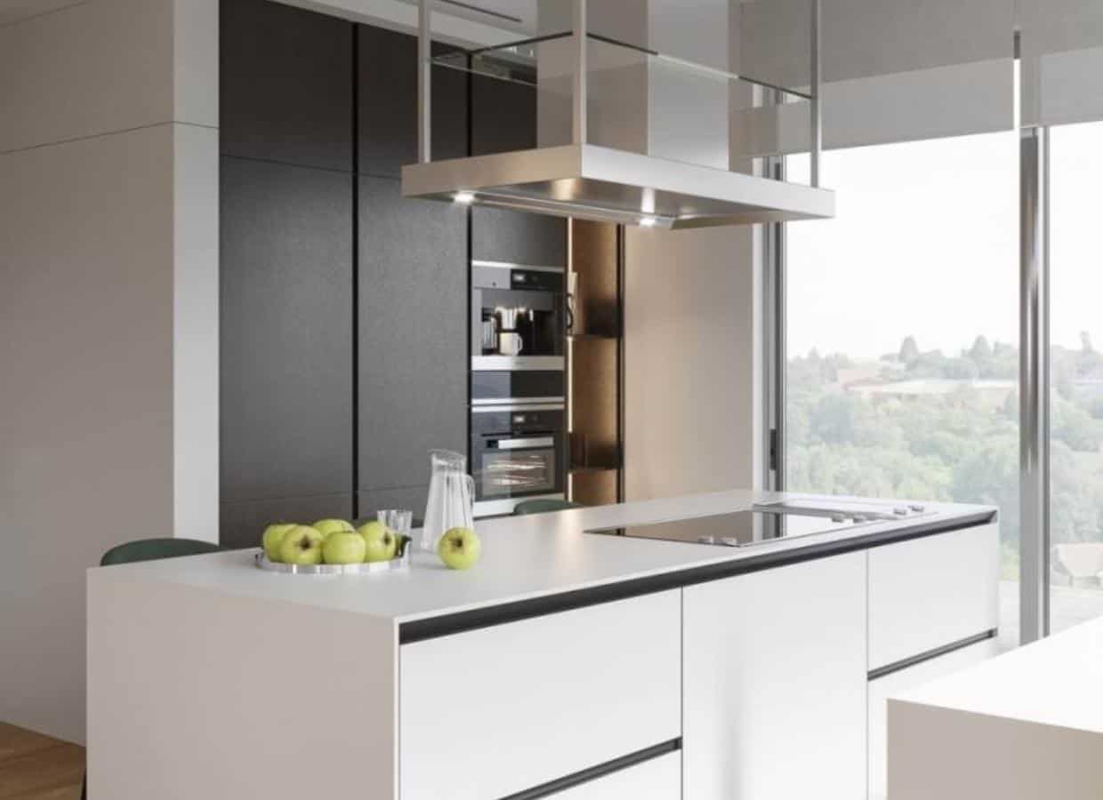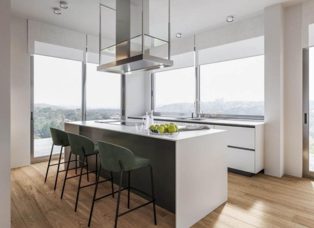The three floors of the house offer private, common and guest areas. On the ground floor, with an area of 100m2, there is a living room, a dining area and a kitchen area. The functional and ergonomic kitchen is equipped with appliances and fittings from renowned brands. Designer furniture brings aesthetics and enhances comfort.