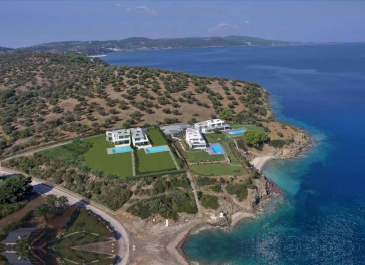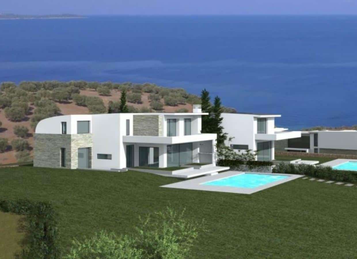 Kassandra, Kassandreia, Villa For Sale, 300 sq.m., Property Status: under construction, Floor: Ground floor, 3 Level(s), 5 Bedrooms 2 Livingroom(s), 1 Kitchen(s), 6 Bathroom(s), 3 WC, Heating: Personal – Petrol, View: Sea view, Building Year: 2021, Energy Certificate: B, 3 parking(s), Floor type: Tiles, Type of door frames: PVC, Features: Elevator, Security door, Security alarm, CCTV, Storage room, Fireplace, Satellite Receiver, Cable TV, Playroom, Internal Staircase, Double Glazed Windows, Window Screens, Balcony Cover, Balconies, BBQ, Pets Allowed, For Investment, Neoclassical, Preserved, Luxury, Mansion, Airy, Roadside, Bright, On Corner, AirConditioning, Solar water system, Boiler, Grass, Automatic Watering, Trees, Swimming pool, Back yard (Garden), New Construction, Painted, Holiday Home, Suitable for Commercial Use, Distance from: Airport (m): 105000, Seaside (m): 5, City (m): 115000, Village (m): 3000, Price: 1.000.000€