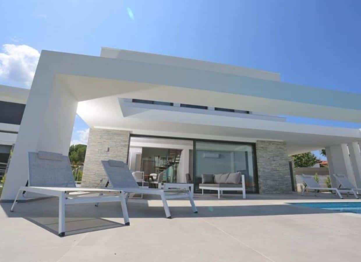 Pallini, Chanioti, Villa For Sale, 200 sq.m., In Plot 720 sq.m., Property Status: Amazing, Floor: Ground floor, 3 Level(s), 5 Bedrooms (3 Master), 1 Livingroom(s), 1 Kitchen(s), 5 Bathroom(s), 5 WC, Heating: Personal – Petrol, Building Year: 2020, Energy Certificate: B+, 3 parking(s), Floor type: Marble, Type of door frames: Aluminum, Features: Security door, Security alarm, Storage room, Attic, Sattelite Receiver, Electric Appliances, Internal Staircase, Double Glazed Windows, Window Screens, Balconies, BBQ, Pets Allowed, For Investment, Furnished, Luxury, Mansion, Airy, Roadside, Not Roadside, Bright, On Corner, AirConditioning, Solar water system, Boiler, Grass, Automatic Watering, Swimming pool, Back yard (Garden), New Construction, Painted, Holiday Home, Suitable for Commercial Use.