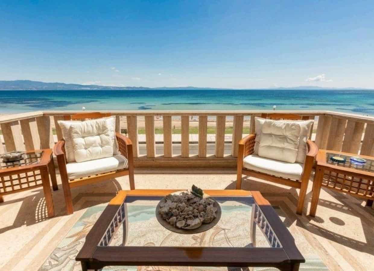 Pallini, Paliouri, Villa For Sale, 250 sq.m., In Plot 2000 sq.m., Property Status: Amazing, Floor: Ground floor, 2 Level(s), 4 Bedrooms 1 Livingroom(s), 1 Kitchen(s), 4 Bathroom(s), 1 WC, Heating: Personal – Petrol, View: Sea view, Energy Certificate: A, 2 parking(s), Features: Elevator, Security door, Security alarm, CCTV, Storage room, Fireplace, Sattelite Receiver, Cable TV, Internet Line, Electric Appliances, Playroom, Internal Staircase, Triple Glazed Windows, Window Screens, Balcony Cover, Balconies, BBQ, Pets Allowed, Water Bore, Furnished, Neoclassical, Luxury, Penthouse, Airy, Roadside, Not Roadside, Bright, AirConditioning, Solar water system, Boiler, Grass, Automatic Watering, Trees, Back yard (Garden), New Construction, Painted, Holiday Home, Suitable for Commercial Use, Distance from: Airport (m): 95000, Seaside (m): 500, City (m): 115000, Village (m): 1000, Price: 1.100.000€