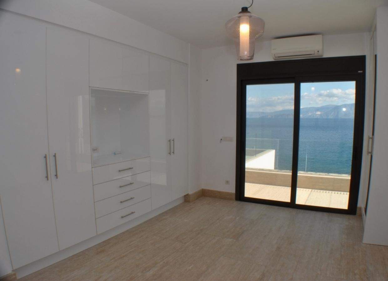 The villa’s ground floor welcomes you with a gracious living room featuring a fireplace, a spacious fitted kitchen/dining area, a bedroom, and a convenient WC. The patio doors on this level open up to a captivating sea-facing terrace, creating a seamless connection between indoor and outdoor living spaces.