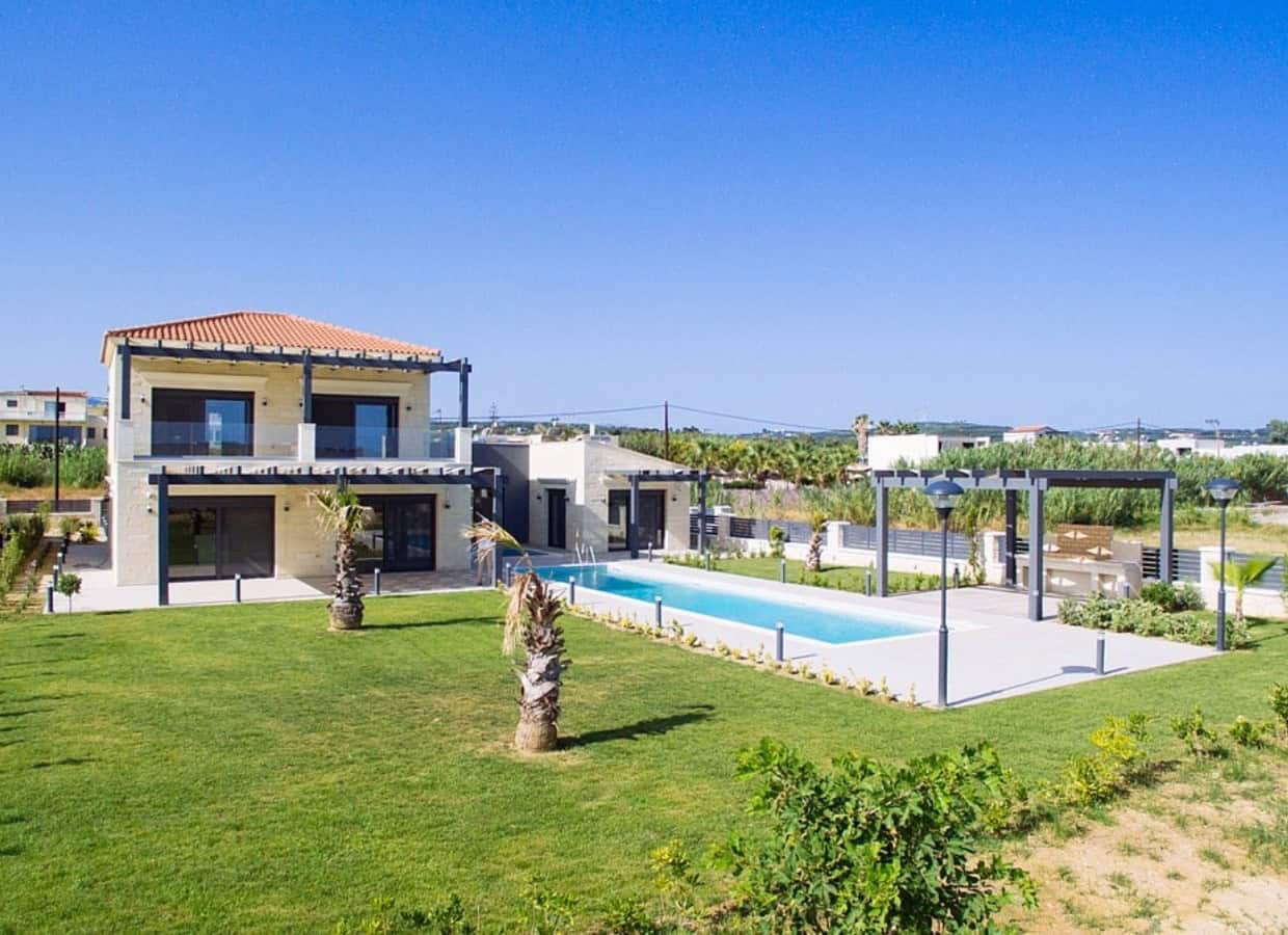 Indulge in coastal luxury with these identical, newly-built stone villas, each boasting a private swimming pool and garden. Nestled on a private plot of 4,351.80m², just a stone’s throw away from the enchanting Pyrgos Psilonerou beach, these residences offer a harmonious blend of modern style, comfort, and breathtaking surroundings.