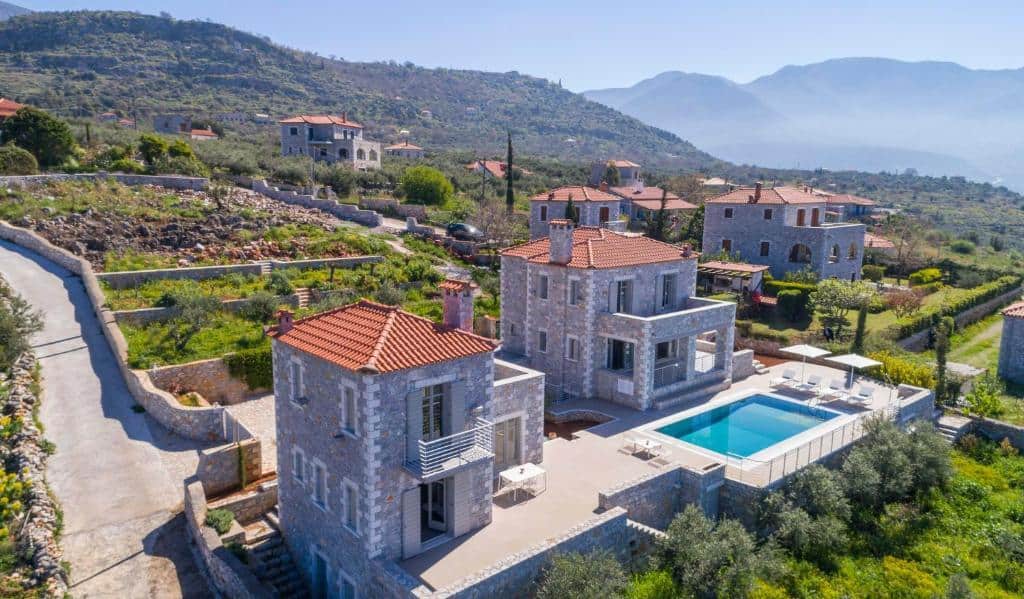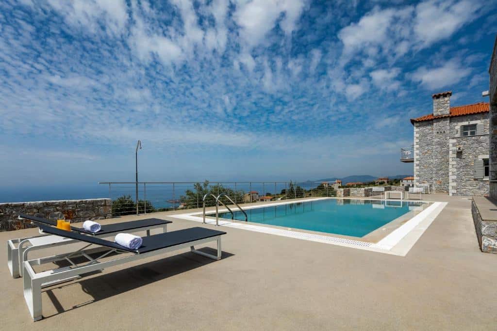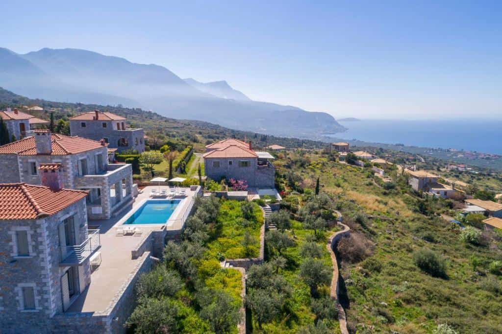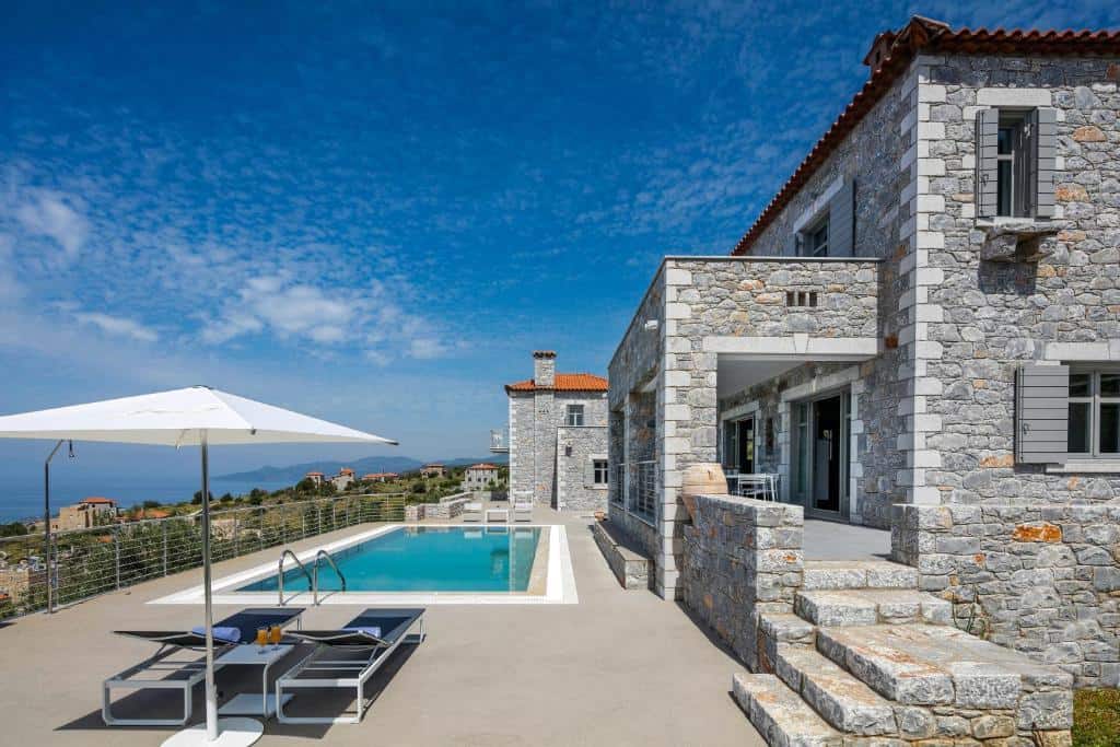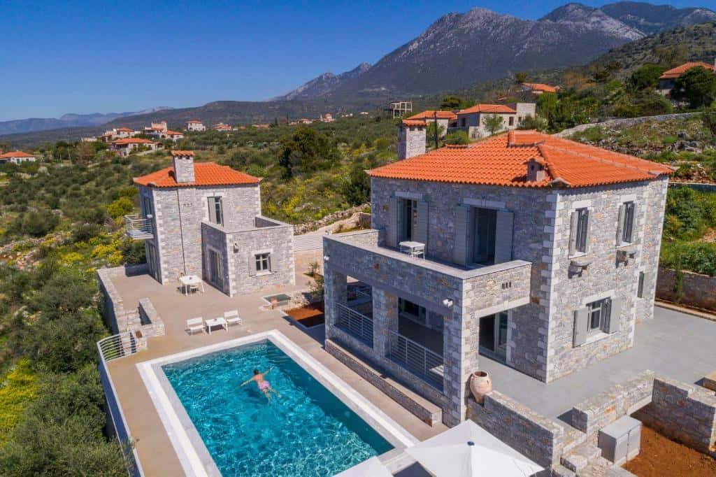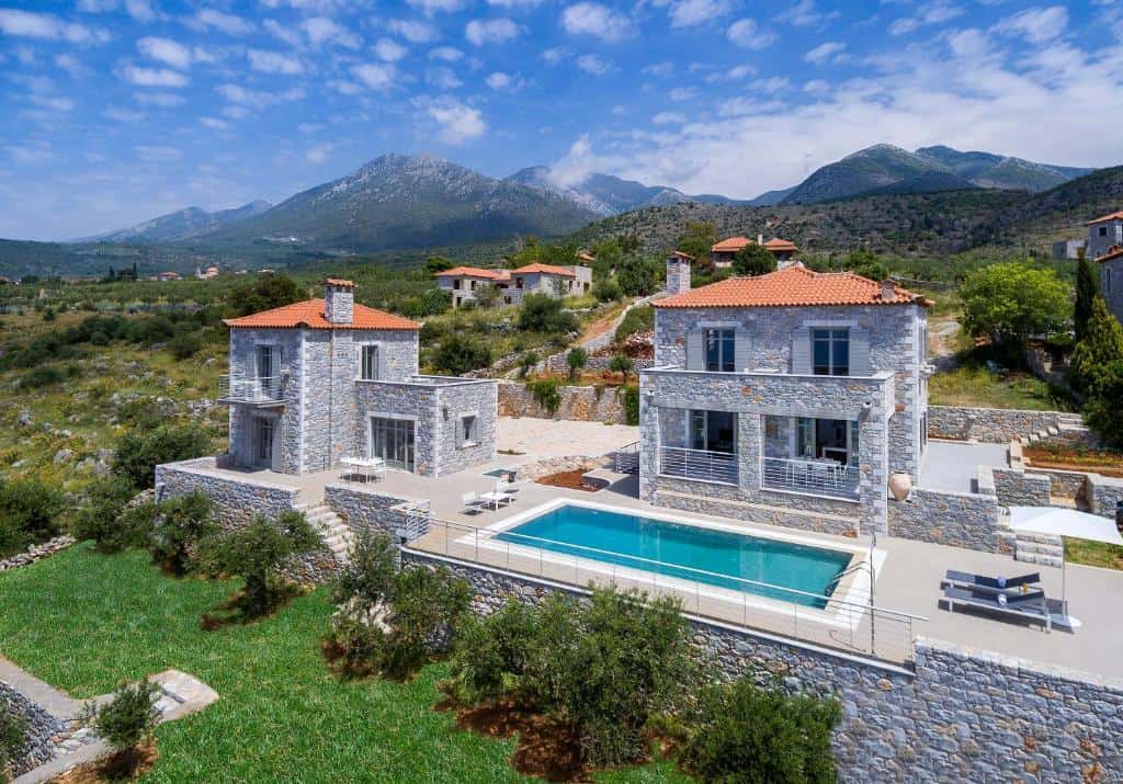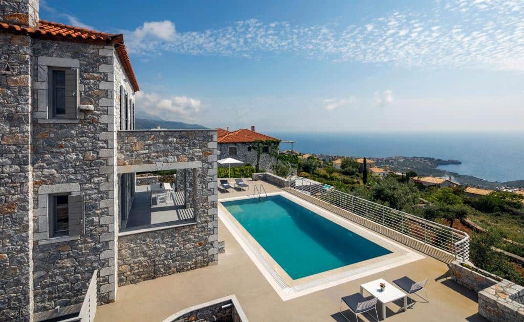 Two magnificent stone villas stand perched atop the rugged hillsides of Leftra, a picturesque village in Western Mani. They exude the timeless charm of traditional Greek architecture. With a commanding view of the cerulean expanse of the Messinian Gulf, these luxurious retreats offer an unparalleled blend of luxury and serenity.