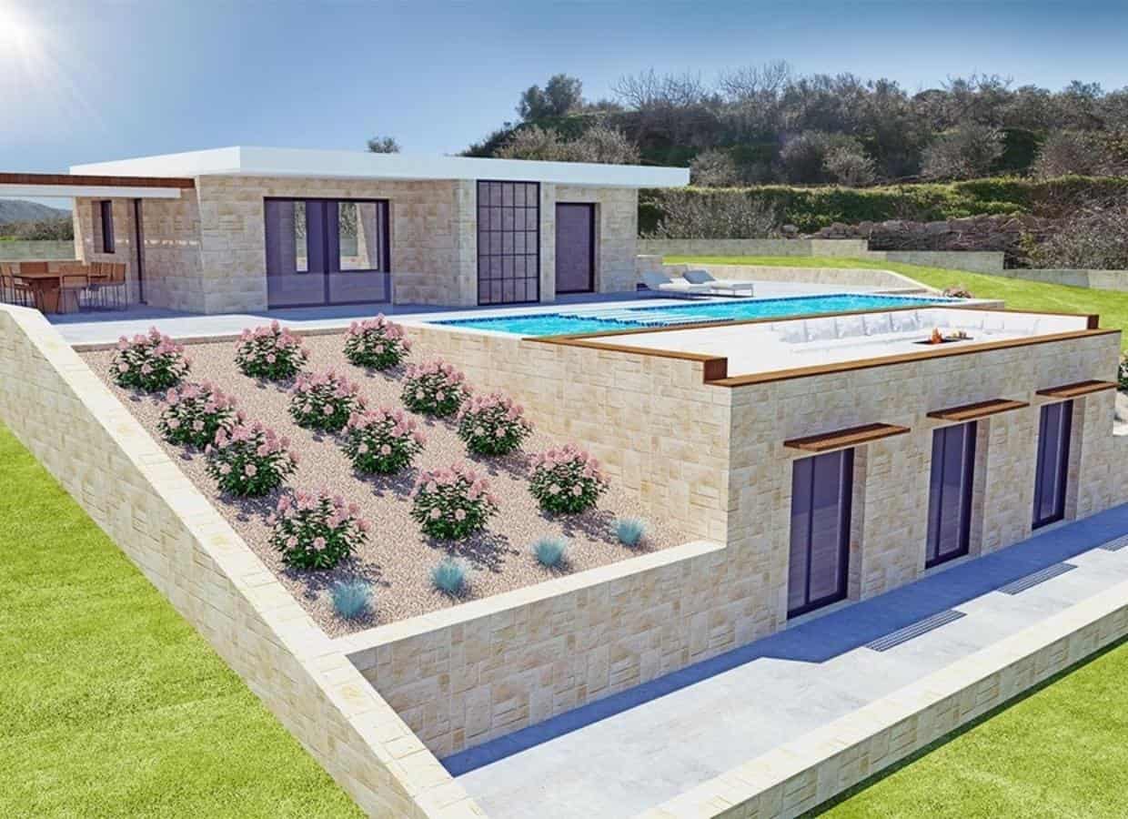 Description: Discover the epitome of tranquil living with this brand-new stone villa in the heart of Almyrida, Chania. Situated in a central location overlooking the majestic mountains and the glistening sea, this villa’s construction is underway, with most stages already completed.