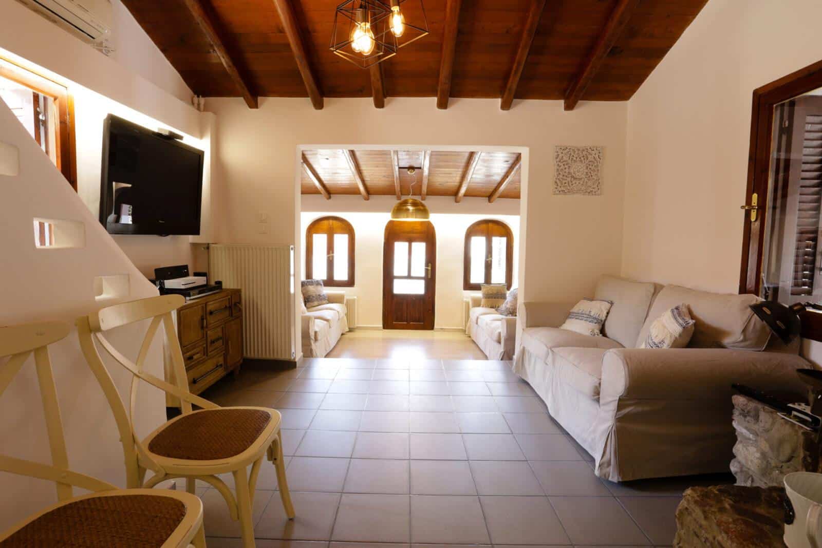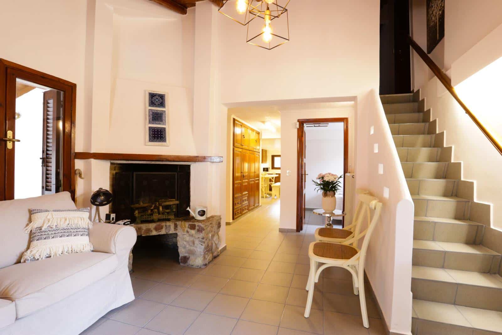 Welcome to your dream villa in Fokida, Greece! This captivating two-story house, impeccably renovated in 2018, stands as an independent oasis surrounded by half an acre of private land adorned with enchanting gardens. Just a stone’s throw away, a mere one-minute walk, lies the pristine Skaloma beach – Nafpaktos’s finest, with its crystal-clear waters and soft sandy shores, ensuring a haven for relaxation and tranquility.