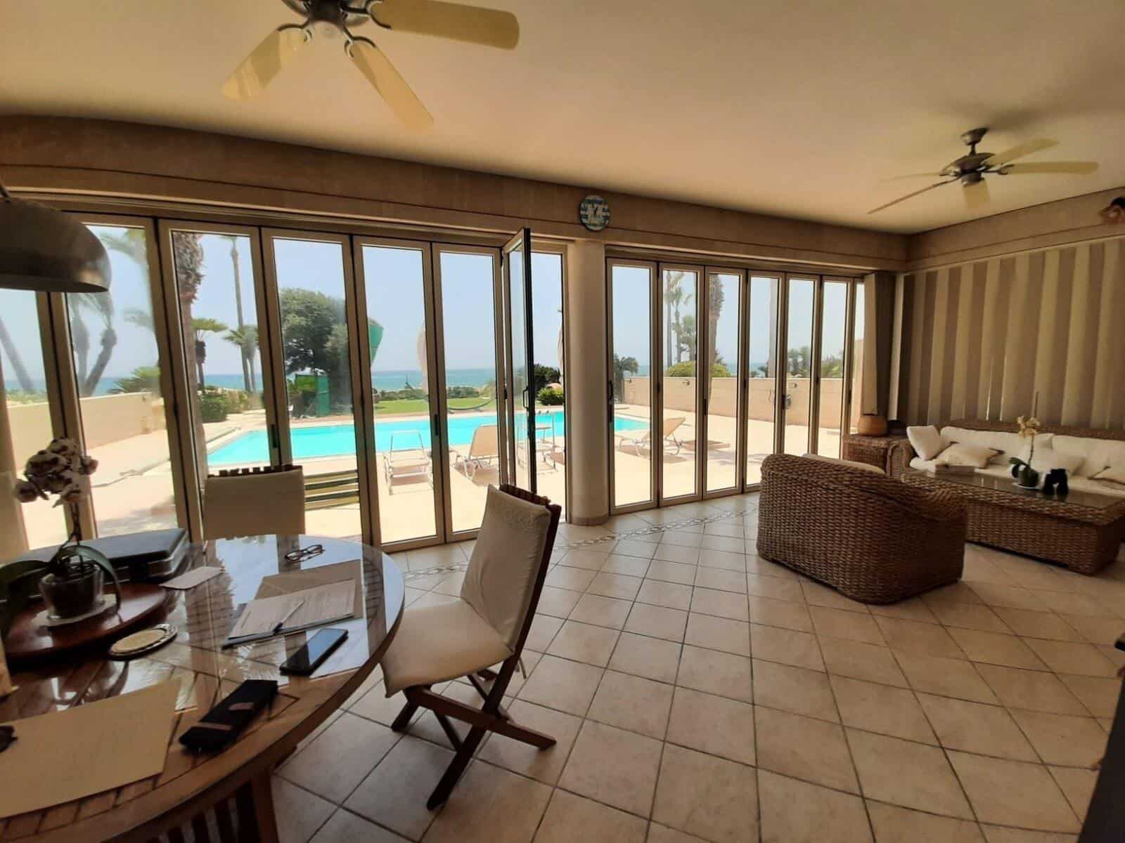 We are introducing a captivating and COMMISSION-FREE villa for sale in the picturesque town of Kiti, Larnaca, Cyprus. This luxurious four-bedroom residence in a gated complex directly on the beach offers a unique blend of seaside living and contemporary elegance.
