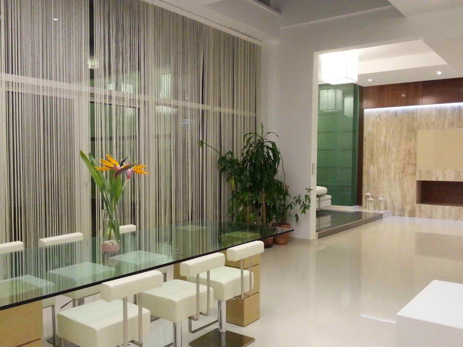 The ground floor hosts an open-plan kitchen and living room, providing a seamless flow of space and creating a central hub for family and social gatherings. The villa has a maid’s room with an ensuite shower, two guest W/Cs, and a laundry room for added convenience.
