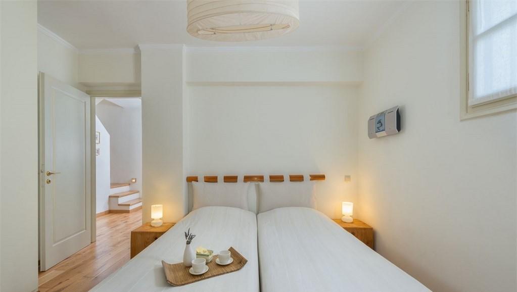 The first home, spanning 135m² across three levels, welcomes guests with three bedrooms, including a majestic master suite and two additional bedrooms with double beds. This residence boasts two bathrooms, a spacious lounge with plush seating and a fireplace, eight dining areas, and indoor and outdoor dining spaces. A large terrace offers unobstructed panoramic views, while the oak kitchen equipped with stainless steel appliances and a supplementary small kitchen ensure culinary excellence. A convenient laundry room adds to the functionality of this stunning abode.