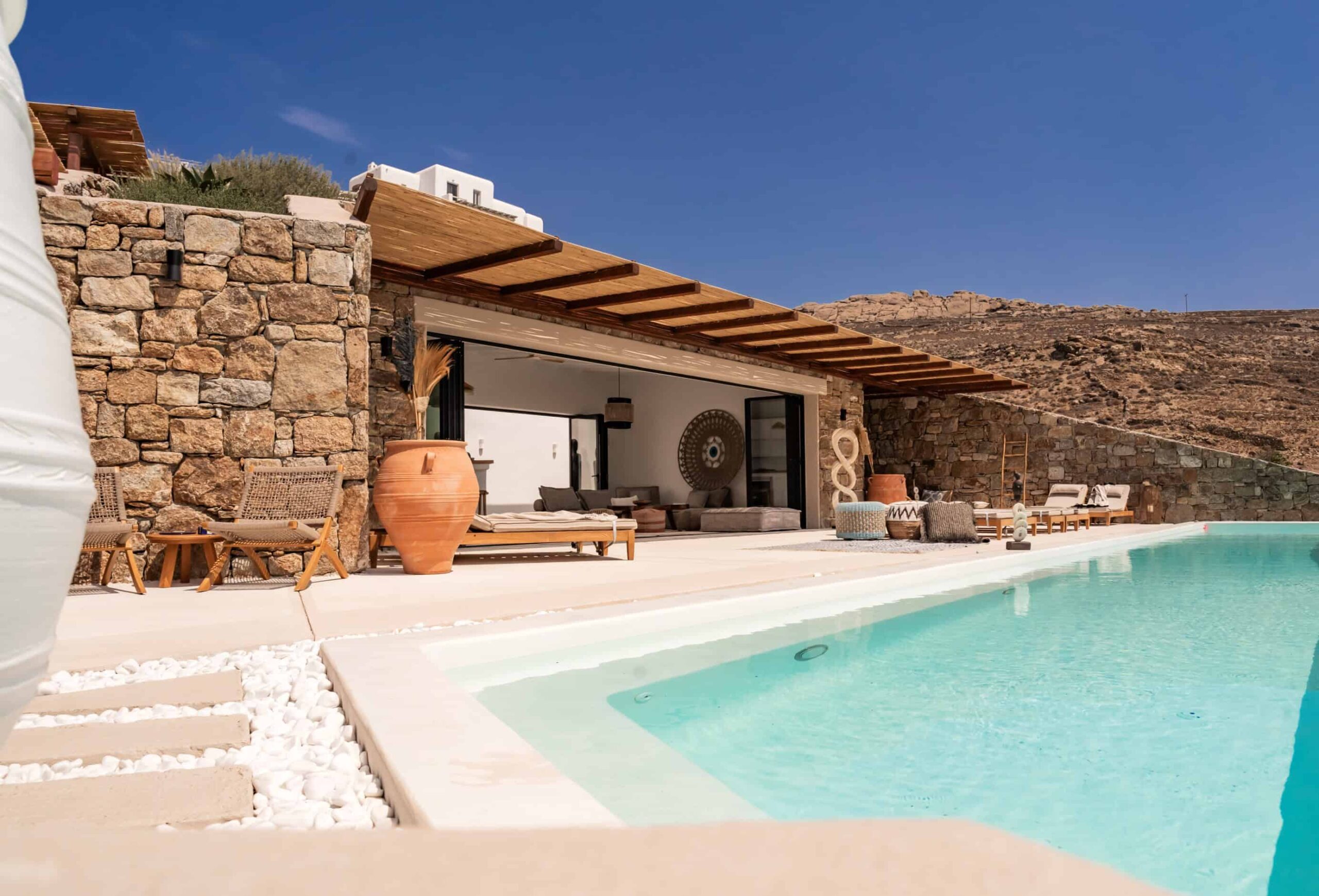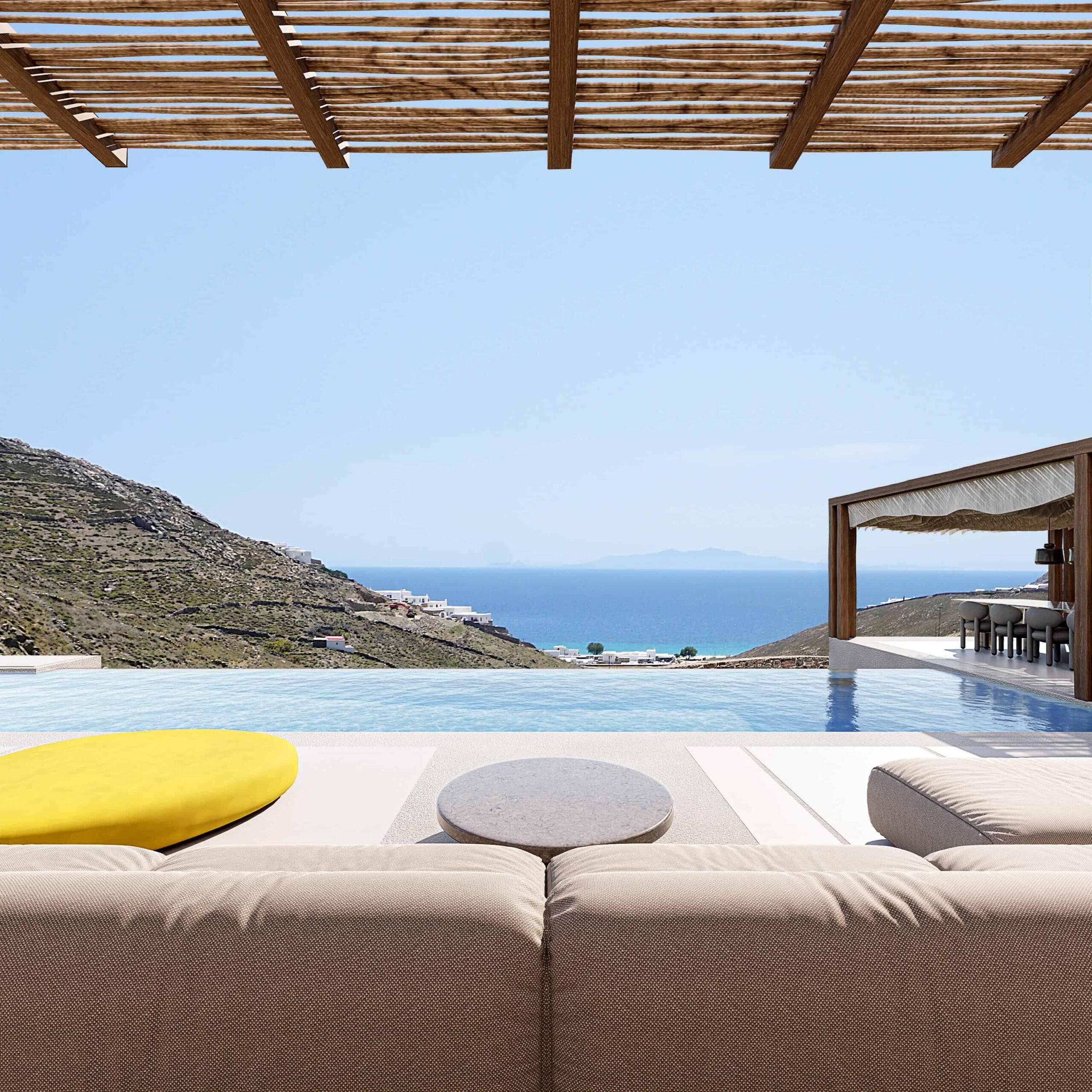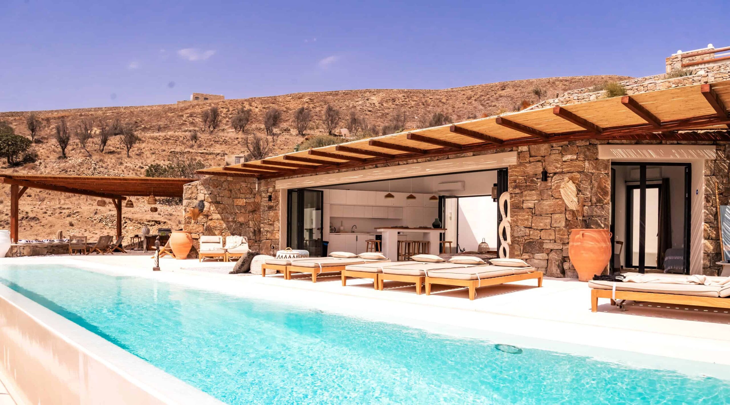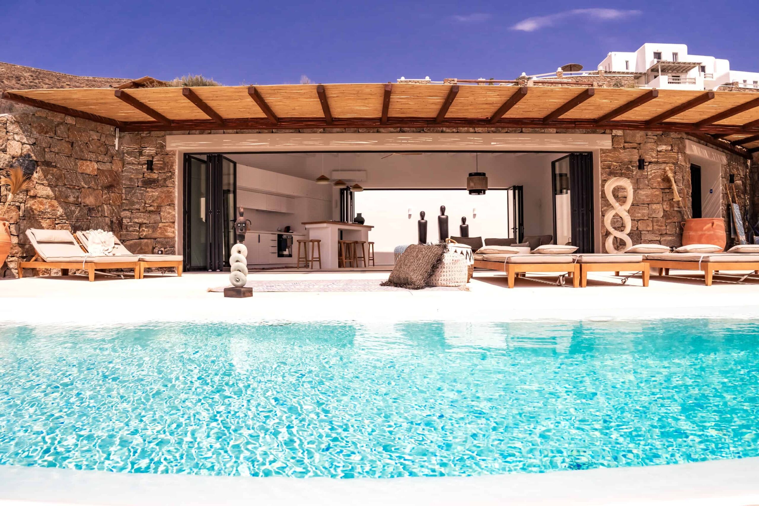 Experience the epitome of luxury living in this stunning 390m² villa situated on a 2000m² plot in the heart of Mykonos. This exquisite property boasts 6 spacious bedrooms and 7 modern bathrooms, ensuring comfort and privacy for all guests. The villa features an expansive 178m² open kitchen and living area, perfect for entertaining and relaxing. Enjoy the beautifully designed 107m² pools and a versatile 260m² functional area with a concrete floor outside. The villa is shaded by 130m² of pergolas and offers convenient parking with a 45m² parking area. For those looking to expand, there is an option to purchase an additional 1,000m² of adjacent land, allowing for the construction of a charming 70m² tiny villa.